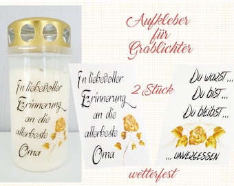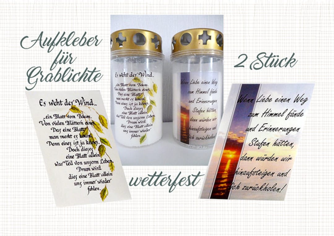 Eine wunderschöne Art der Erinnerung! Dieses Set mit 6 Grabkerzen-Aufklebern trägt die liebevolle Botschaft 'Wir schicken dir zum Geburtstag unsere Liebe in den Himmel'. Jeder Aufkleber misst 5x8cm und passt perfekt auf Standard-Grabkerzen und Grablaternen. Die Aufkleber sind in verschiedenen Varianten erhältlich, darunter klassisches Weiß und warmes Rot, sodass du die passende Farbe für deine Kerzen findest. Das elegante Design mit dezentem Herzsymbol und schöner Schriftart drückt Würde und Liebe aus. Einfach anzubringen und haften zuverlässig auf Glas, Keramik und Kunststoff. Wetterfest und UV-beständig behalten sie auch nach langer Zeit ihre Qualität und Farbe. Eine würdevolle Möglichkeit, die Verbundenheit zu verstorbenen Lieben auszudrücken - besonders an Geburtstagen oder anderen Gedenktagen. Wichtig: Immer von Feuerquellen fernhalten! Eine berührende Art, persönliche Erinnerungen zu gestalten.