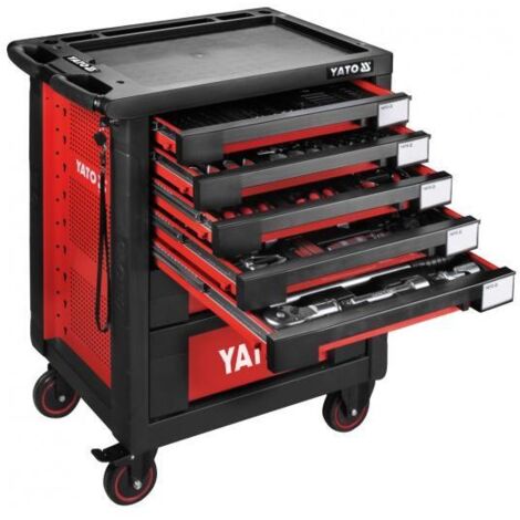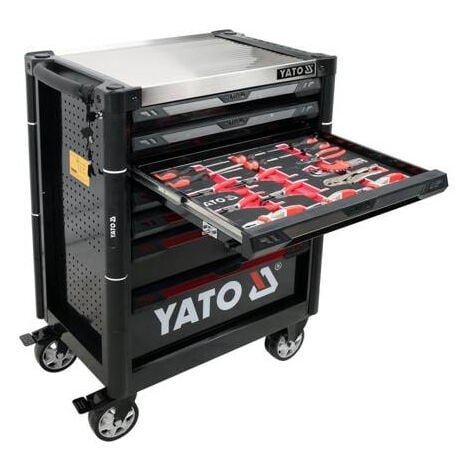 Ordnung im Chaos! Der Yato Werkzeugwagen YT-0902 bringt System in deine Werkstatt. Mit 6 praktischen Schubladen und den Maßen 958x766x465 mm bietet er reichlich Stauraum für alle deine Werkzeuge. Aus robustem Stahlblech - made to last!