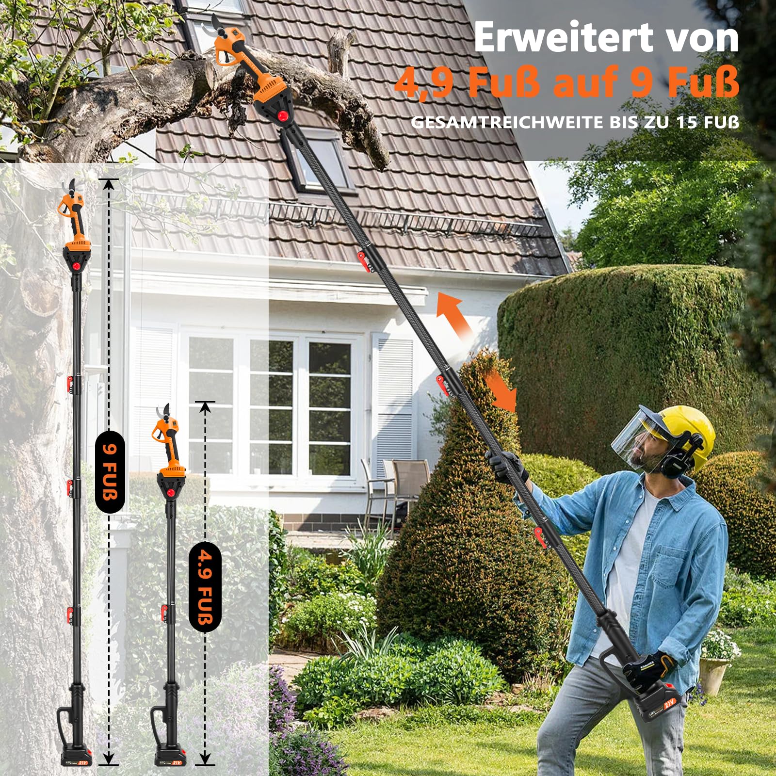 Akku Astschere Mit Teleskopstange - 2x2.0Ah, LCD Display, Bis 4,5m Reichweite