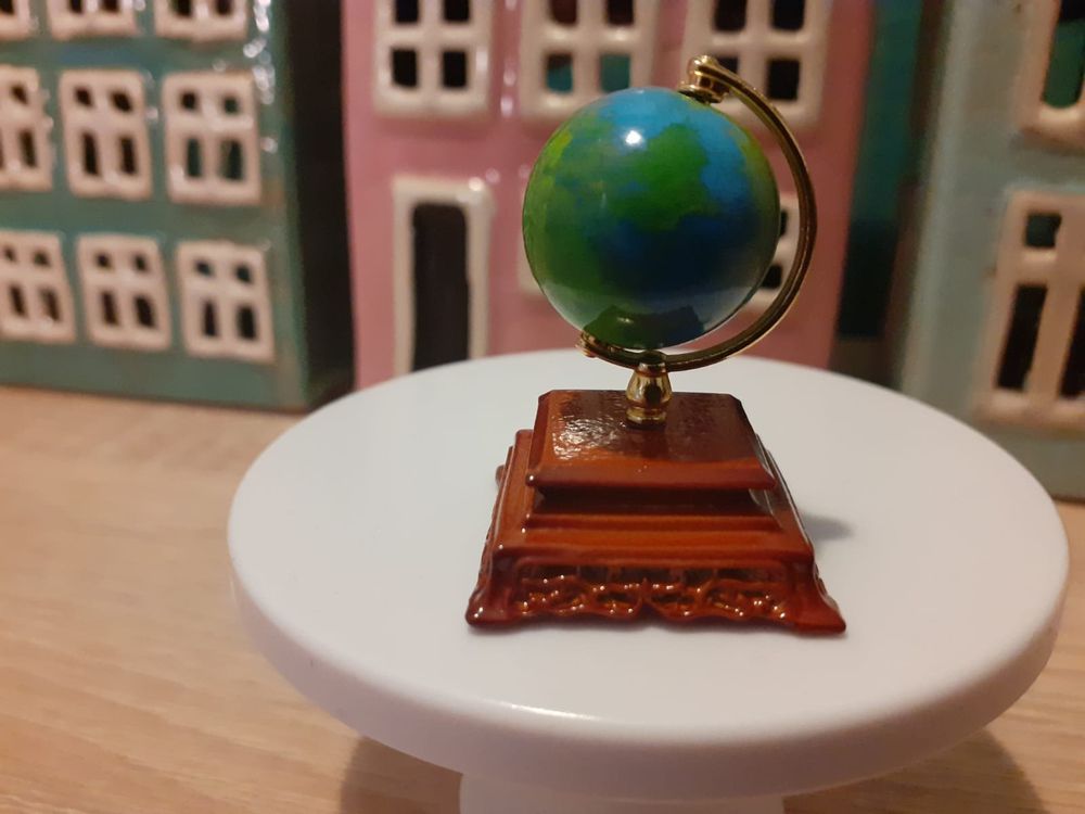 So süß! Dieser Miniatur-Globus im Maßstab 1:12 macht jede Puppenstube gleich viel lebendiger. Aus Birkenholz gefertigt, mit bunten, detailreichen Aufdrucken - ein echter Hingucker. Perfekt für Puppenhaus-Bibliotheken, Büros oder Klassenzimmer. Aber nicht nur für Puppenhäuser super - auch als Deko für Regale, Schreibtische oder Vitrinen ein echter Eyecatcher. Die leuchtenden Farben und das liebevolle Design machen einfach gute Laune. Einfach hinstellen und bewundern - mehr Aufwand braucht's nicht. Tolles Geschenk für kleine und große Puppenhaus-Fans, oder einfach für alle, die Miniaturen lieben. Bringt sofort mehr Charme in jede Spielzeug-Welt!