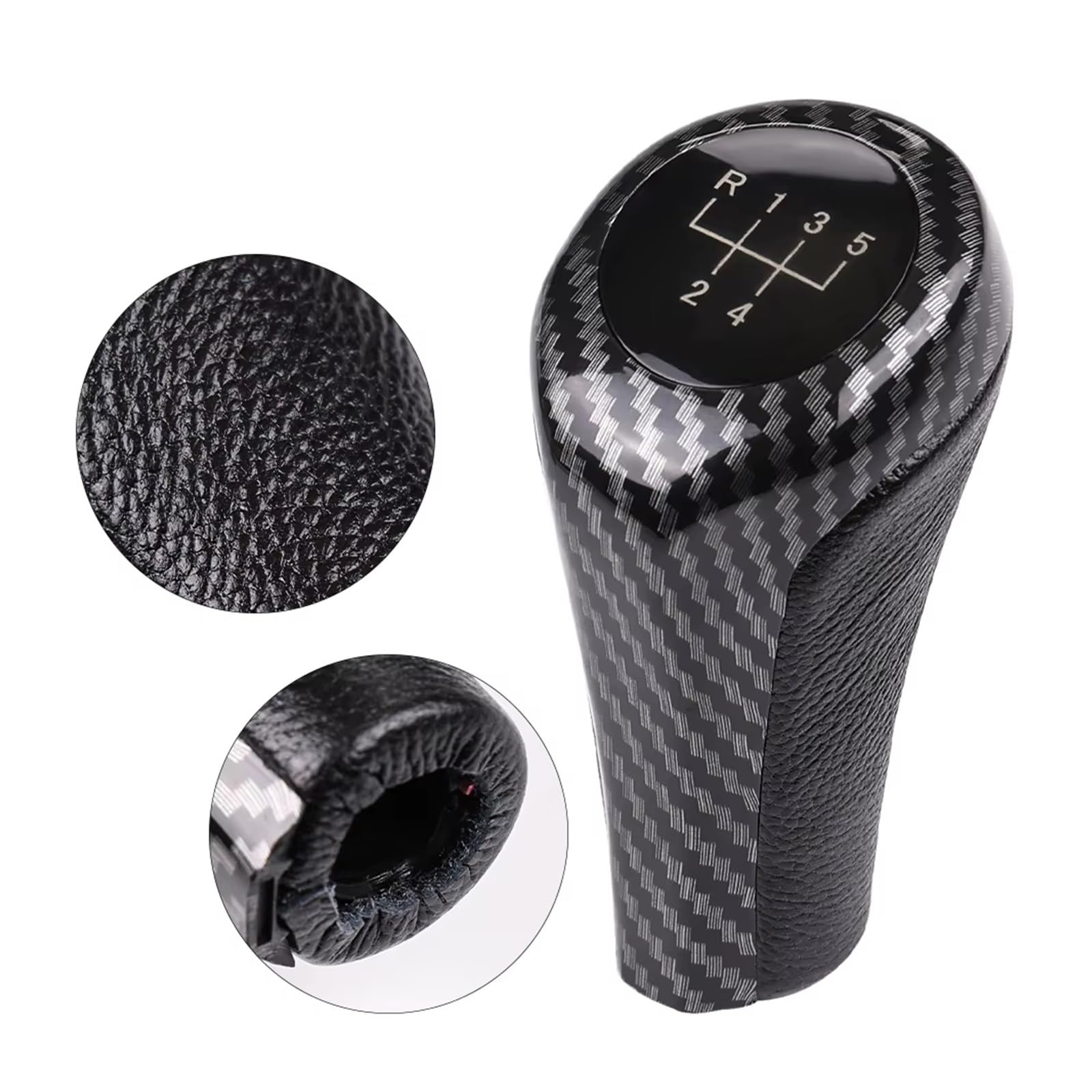 BMW Fahrer, verpasse deinem Interior den letzten Schliff! Dieser Schaltknauf in verchromt mit Kohlefaser-Optik sieht einfach mega aus. Passend für 1er (E81, E82, E87), 3er (E46, E90, E91, E92), 5er (E60, E61), 6er (E63), X1 (E84), X3 (E83), X5 (E53) und andere Modelle. Aus ABS-Kunststoff und PU-Leder, 9,5 cm hoch, mit 5/6 Gang Schema. Einfache Montage - direkt austauschbar, keine Modifikationen nötig. Ergonomisches Design für komfortable Schaltvorgänge. Einfach reinigen und pflegen. Mach dein Fahrzeug individueller und stylischer! Einfach bestellen, einbauen und sich über das Upgrade freuen.