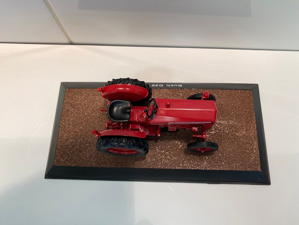 Ein echter Hingucker für alle Traktor-Fans! Dieses detailgetreue Modell des Bukh D30 Traktors aus dem Jahr 1958 im Maßstab 1/32 ist ein absolutes Sammlerstück. Das Besondere: Es wird mit DEINEM individuellen Wunschkennzeichen geliefert! Die selbstklebenden Kennzeichen kannst du einfach zuschneiden und aufbringen. Das Modell ist aus Metall mit Plastikteilen gefertigt und etwa 9 cm lang. Geliefert wird es in der originalen Atlas-Verpackung mit abnehmbarem Sockel - perfekt zur Aufstellung oder als Geschenk. Die Lieferung des Wunschkennzeichens erfolgt automatisch innerhalb eines Werktages. Ein tolles Geschenk für Landwirte, Modellbau-Fans oder alle, die sich für Oldtimer-Traktoren begeistern. Hol dir ein Stück Landwirtschaftsgeschichte ins Regal!