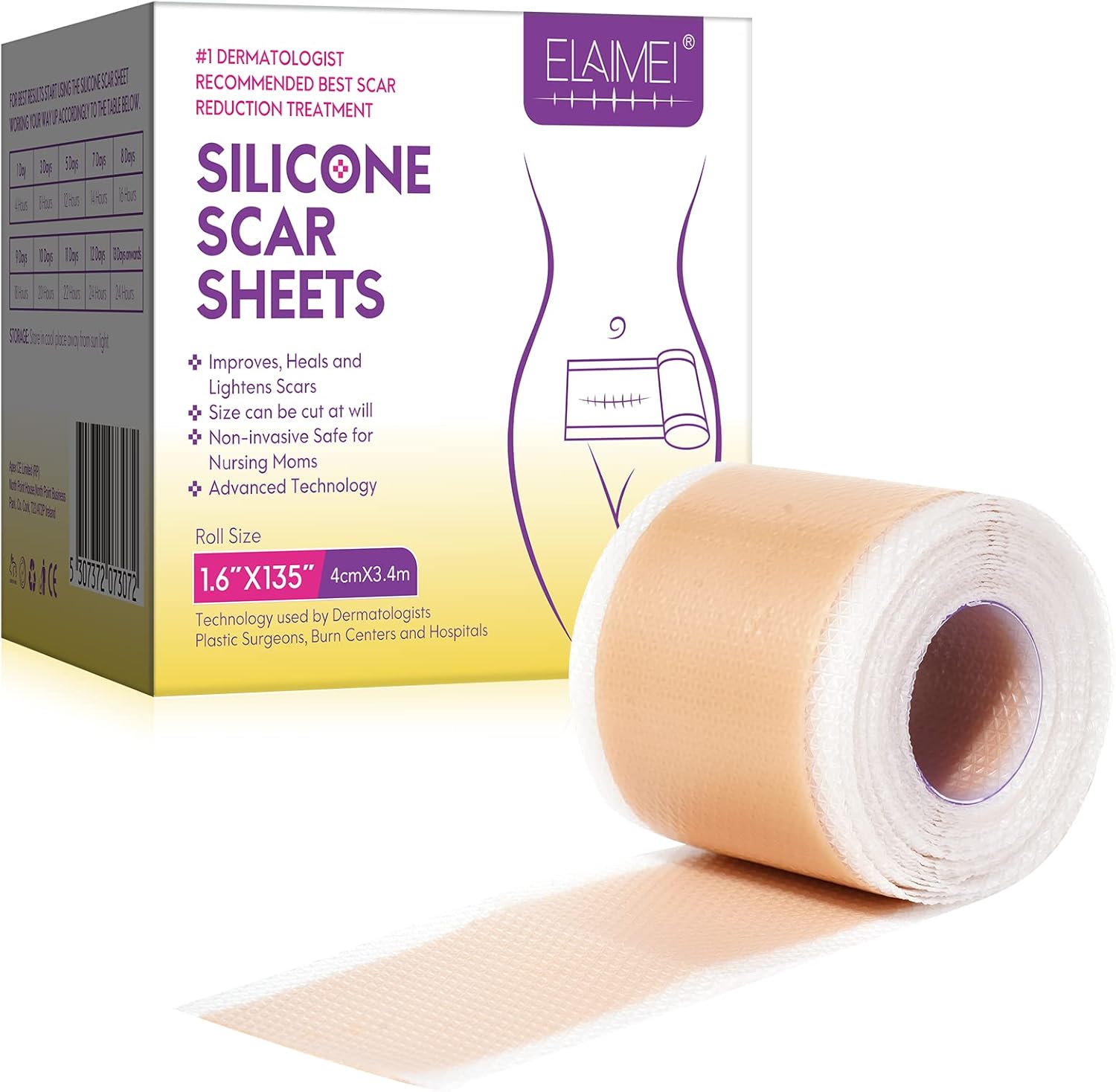 Du willst deine Narben optisch verbessern? Probier doch mal diese Silikon-Narbenpflaster aus! Die Rolle ist 1,5 Meter lang und 2,5 cm breit – du schneidest dir einfach die passende Länge zu. Das Material ist super weich, hautverträglich und atmungsaktiv. Es ist wasserfest, du kannst es also auch unter der Kleidung tragen oder sogar duschen. Einfach reinigen und wiederverwenden. Egal ob OP-Narbe, Kaiserschnitt oder Dehnungsstreifen – das Pflaster hilft, die Haut zu glätten und die Verfärbung zu reduzieren. Kein Wunder, dass Ärzte Silikon zur Narbenpflege empfehlen!
