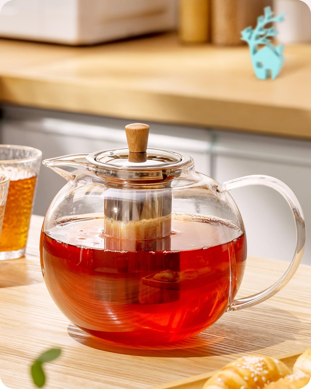 • 1,8L Teekanne Glas Mit Stövchen - Borosilikatglas Mit Siebeinsatz