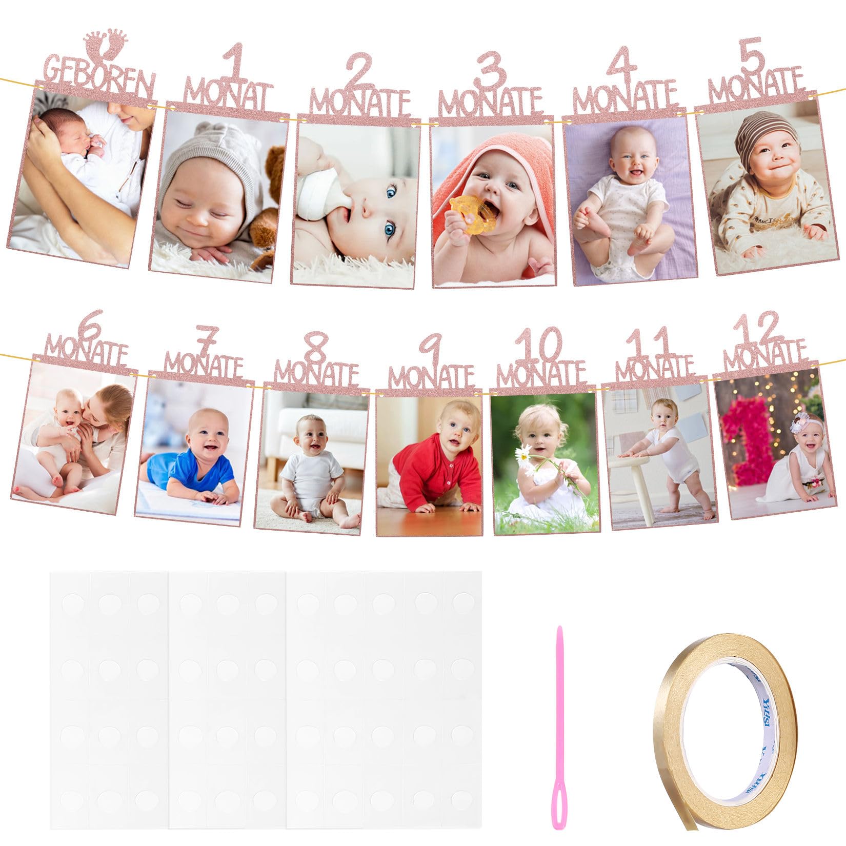 Im Set: 12 Fotokarten (jede 12,5x23,5cm), 5m Aufhängeschnur, Klebepunkte. Ein DIY-Projekt, das wirklich jeder hinbekommt und das emotionaler nicht sein könnte! Schöner kann man das erste Jahr kaum festhalten - versprochen!