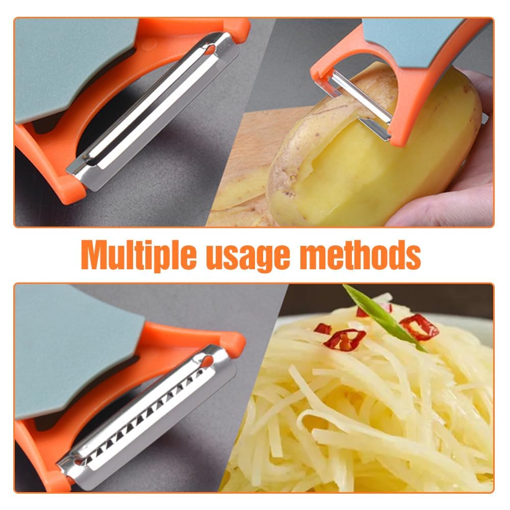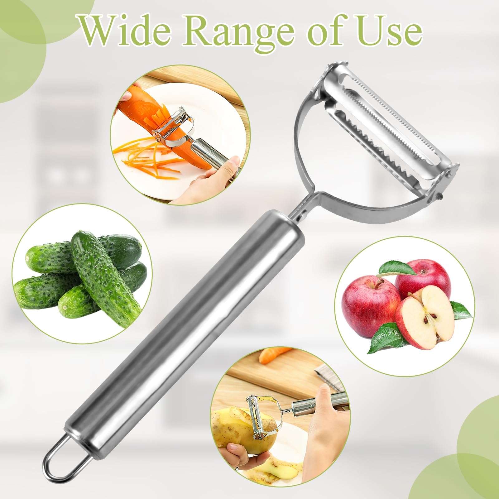 Kochbegeisterte aufgepasst! Dieser geniale 2-in-1 Gemüseschäler aus Edelstahl macht deine Küchenarbeit zum Kinderspiel. Einerseits ein klassischer, superscharfer Schäler für Kartoffeln, Karotten, Äpfel und mehr - andererseits ein praktischer Julienne-Schneider für feine Gemüsestreifen. Beidseitig geschliffene Klinge für Vorwärts- und Rückwärtsbewegungen, perfekt für Rechts- und Linkshänder. Mit 17,5x5,5 cm handlich und mit ergonomischem Griff für sicheren Halt. Aus rostfreiem Edelstahl, spülmaschinenfest und super langlebig. Zaubere im Handumdrehen dekorative Gemüseraspeln für Salate, Garnituren oder asiatische Gerichte. Spart Zeit und Nerven in der Küche - kein separates Julienne-Gerät mehr nötig! Ein absolutes Must-Have für jede Küche, das traditionelles Schälen und kreatives Schneiden in einem Gerät vereint. Einfach in der Handhabung, einfach zu reinigen - einfach genial!