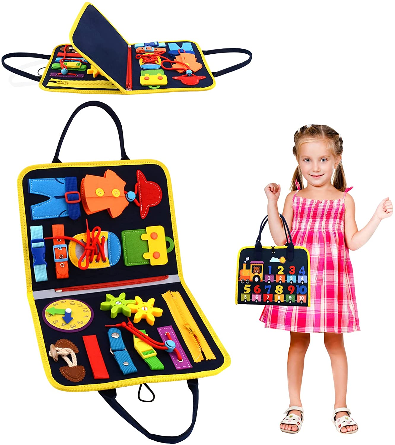Oh, wie süß! Dieses Montessori Busy Board mit niedlichen Tier-Motiven begeistert die Kleinen ab 1 Jahr total. Das bunte Filzbuch fördert spielerisch die Entwicklung und ist perfekt für kleine Entdeckerhände. Mit Gemüsesortieren, Schnürsenkelbinden und Klettverschlüssen lernen Kinder ganz nebenbei wichtige Alltagsfähigkeiten. Aus weichem, ungiftigem Filz gemacht - super sicher für zarte Kinderhände. Ultra-praktisch für unterwegs: Leicht, kompakt und einfach mitzunehmen im Auto oder Flugzeug. Einfach aufklappen und sofort losspielen! Das ideale Geschenk zu Geburtstag, Weihnachten oder einfach so. Mach deinem kleinen Schatz eine Freude und fördere seine Feinmotorik mit diesem vielseitigen Lernspielzeug!