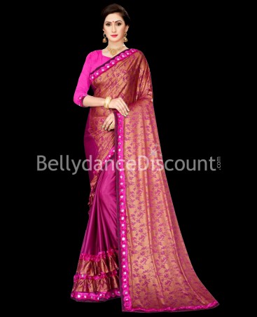 Tradition meets Moderne! Dieser wunderschöne indische Sari im Design 9646 macht das Anlegen zum Kinderspiel. Er ist bereits vorgefüllt und verziert - kein mühsames Plissieren mehr nötig! Einfach den verstellbaren Hakenverschluss an der Taille schließen und schon sitzt der Sari perfekt. Inklusive ungenähter Blusenteile - du sparst dir viel Zeit gegenüber traditionellen Saris. Verziert mit aufwändiger Sequenzarbeit, Stickerei, Pailletten und Blumenapplikationen - einfach atemberaubend! Erhältlich in den Größen XS (86,4 cm) bis XL (106,7 cm). Wichtig: Vor dem Kauf unbedingt die Größentabelle checken und genau messen! Perfekt für Hochzeiten, Feste, kulturelle Veranstaltungen oder wenn du einfach mal etwas Besonderes tragen willst. Siehst aus wie ein teurer Designer-Sari, aber ohne den Aufwand - einfach überwerfen und strahlen! Ein echter Hingucker, der garantiert Komplimente regnet!