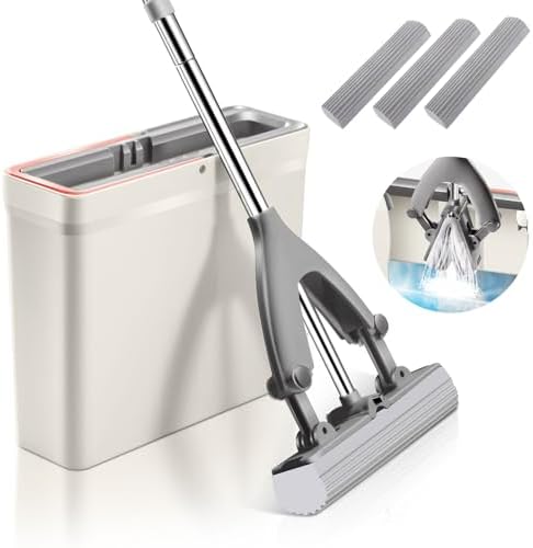 Wischen war noch nie so einfach! Dieser 2-in-1 Mop von besitzt einen super saugstarken PVA-Schwammkopf, der sich ganz easy selbst auswringen lässt – ohne dass du dir die Hände nass machst. Einfach den Hebel ziehen, und schon wird das überschüssige Wasser herausgedrückt. Der Schwamm saugt sich voll wie ein Schwamm und gibt die Feuchtigkeit gleichmäßig auf dem Boden ab. Perfekt für Fliesen, Laminat, Holz oder Marmor. Mit dem verstellbaren Edelstahlgriff (ca. 110 cm) musst du dich nicht bücken, und das Kleiderloch ermöglicht eine platzsparende Aufbewahrung. Im Lieferumfang sind zwei Schwammköpfe enthalten – du bist also eine Weile versorgt. Ob in der Küche, im Bad oder im Flur: Mit diesem Mopp wird die Reinigung zum Kinderspiel. Einfach genial für alle, die keine Lust auf aufwändiges Schrubben haben!