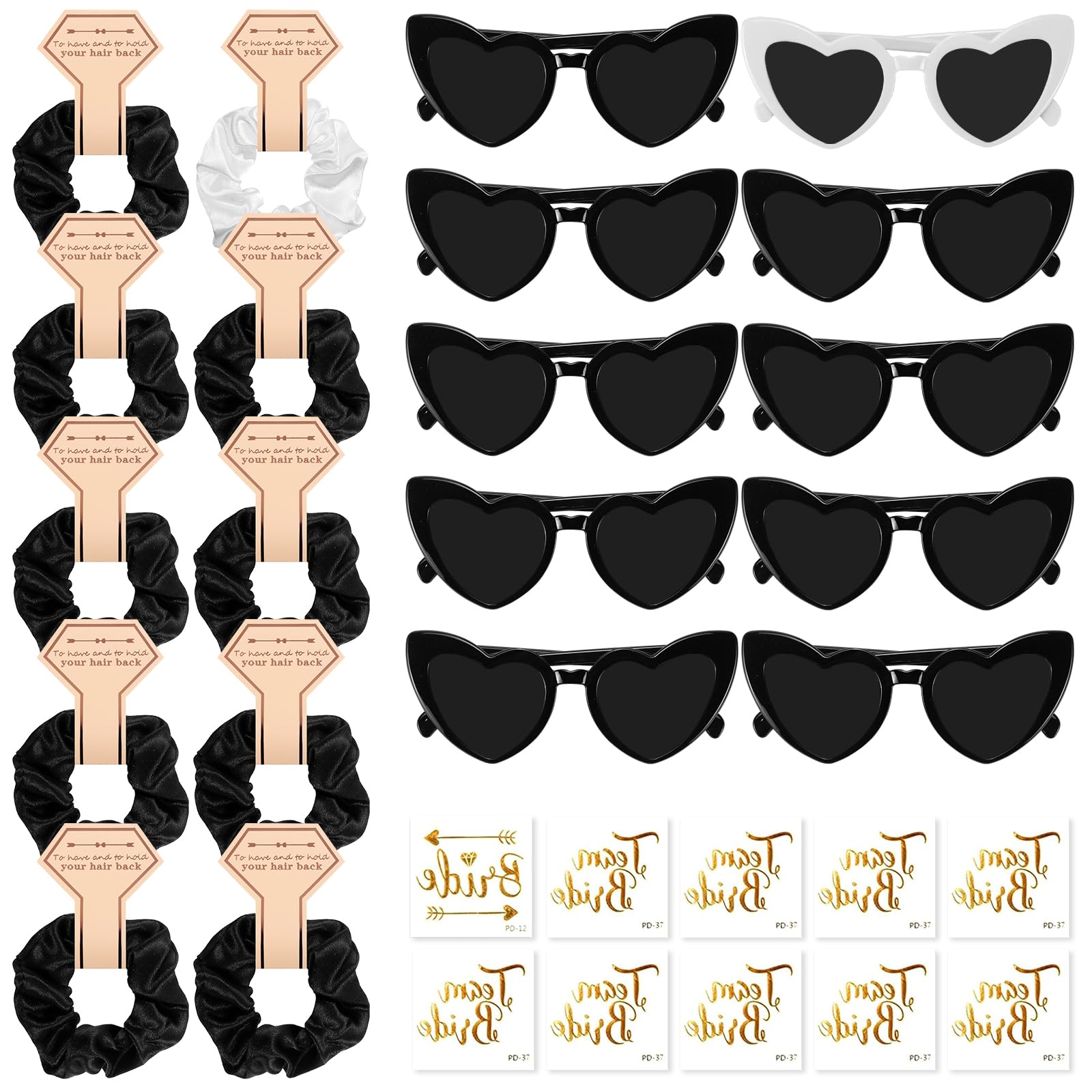 Mega für jede Party! Dieses BAODBF Set mit 10 herzförmigen Sonnenbrillen und 10 süßen Haargummis ist perfekt für Junggesellinnenabschiede, Brautpartys oder einfach nur für lustige Abende. Die Herzbrillen aus leichtem Kunststoff haben integrierte Nasenpads und passen auf die meisten Gesichter. Die elastischen Haarbänder aus Satin sind super bequem und sehen total niedlich aus. In Pink, Lila oder Grün erhältlich - einfach alle im Team gleich ausstatten! Perfekt für Braut, Brautjungfern und alle Gäste. Ob für Valentinstag, Muttertag oder einfach so - das Set bringt sofort Stimmung und sorgt für coole Fotos. Die Brillen sind etwa 15,5x6 cm groß, also genau die richtige Größe für lustige Party-Momente. Einfach unverzichtbar für jede Feier!