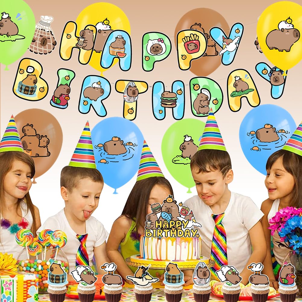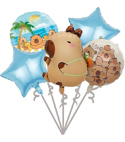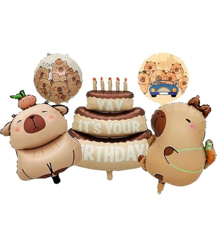 Wow, dieses Capybara Deko-Set ist der absolute Hit für jede Party! Mit 10 verschiedenen Teilen - inklusive Rucksack-Luftballon, sitzendem Capybara, Geburtstagstorte und vielem mehr. Die süßen Capybara Motive in bunten Farben machen jede Feier zum Highlight. Einfach aufblasen (geht mit Pumpe oder Mund) und überall im Raum verteilen. Aus hochwertiger Alufolie, die lange hält. Perfekt für Kindergeburtstage, Themenpartys oder einfach für alle Capybara-Fans. Mach deine nächste Party unvergesslich mit diesen niedlichen Tierchen!