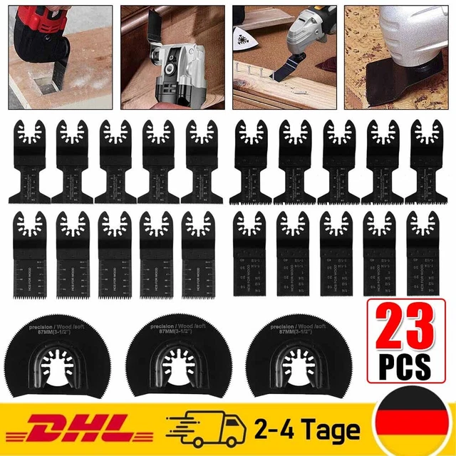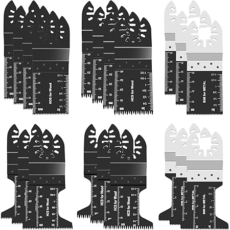 Für alle Heimwerker und Profis: Dieses 10-teilige Sägeblatt-Set ist ein echter Allrounder für dein oszillierendes Multitool! Die Sägeblätter sind aus hochwertigem Kohlenstoffstahl und rostfreiem Stahl gefertigt - super robust und langlebig. Damit kannst du wirklich alles schneiden: Holz, Kunststoff, Metall - einfach alles! Das Set enthält verschiedene Formen wie rechteckige und dreieckige Sägeblätter, sodass du für jeden Einsatzzweck das passende Blatt parat hast. Die Tiefenmarkierungen an den Seiten helfen dir dabei, immer präzise Schnitte zu machen. Kompatibel mit den meisten Multitools von Dremel, Makita, Einhell und anderen Marken. Wichtig: Passt nicht zur neuen Fein Starlock-Version und einigen anderen speziellen Systemen. Aber für die meisten Standard-Multitools ist es perfekt geeignet. Ein Set, das wirklich alle deine Schneid- und Sägearbeiten abdeckt - praktischer geht's nicht!