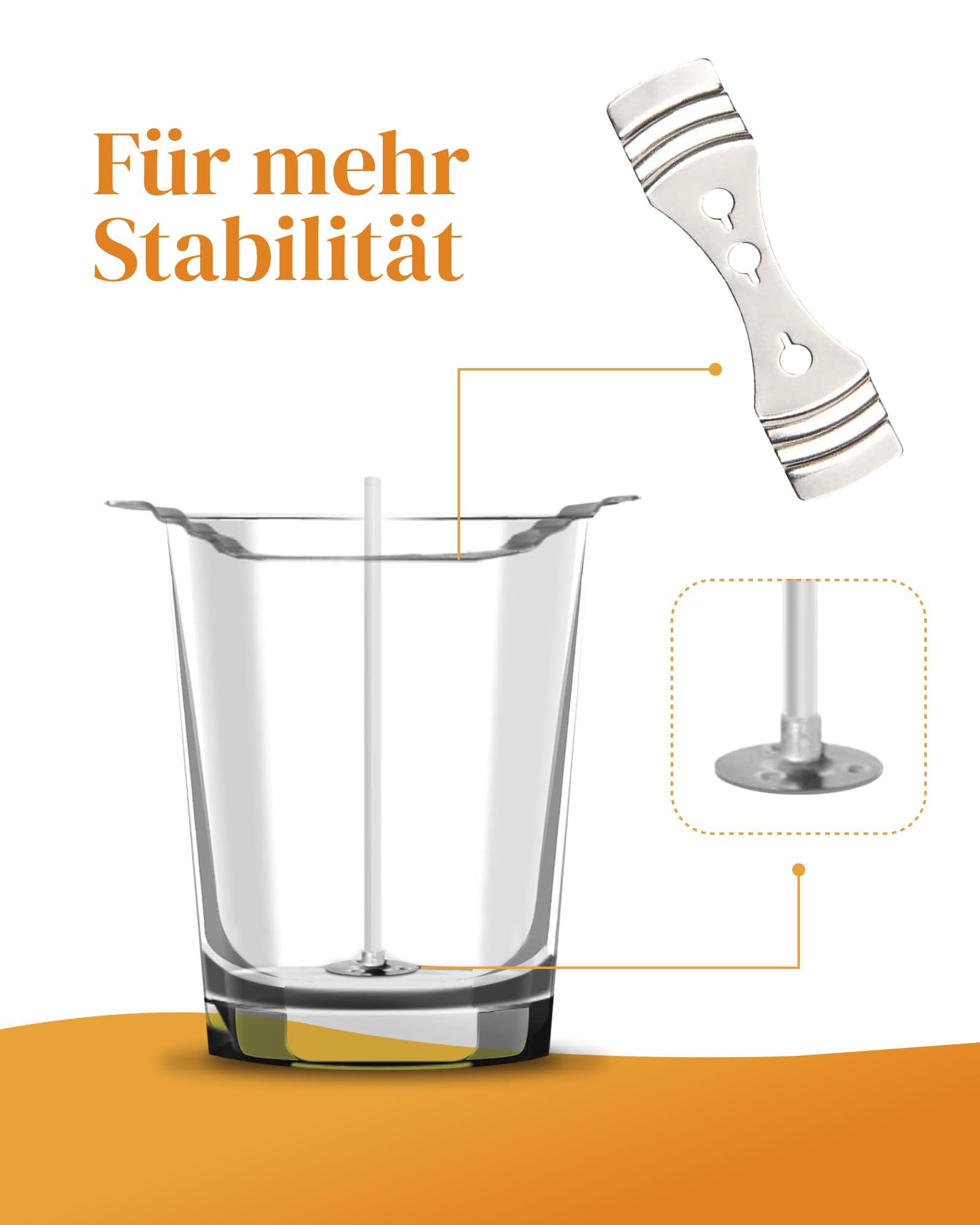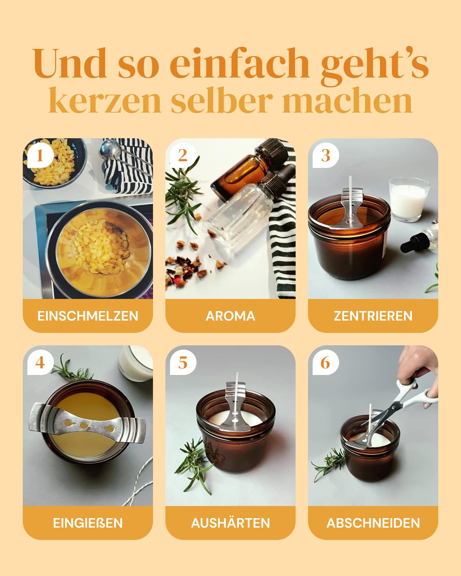 Willst du deine eigenen Kerzen machen? Dieses Set mit 100 Kerzendochten ist perfekt dafür! Jeder Docht ist 15 cm lang, aus 100% Baumwolle und mit einer Schicht aus Sojawachs überzogen. Das Beste: Komplett frei von Paraffin, Zink und anderen schädlichen Stoffen - also absolut ungiftig und umweltfreundlich. Die Dochte brennen gleichmäßig ab, ohne stinkenden Rauch oder Ruß. Im Lieferumfang ist auch eine praktische Zentriervorrichtung dabei, die deine Kerzen stabil macht und verhindert, dass sie umkippen. Egal ob du Teelichter, Stumpenkerzen, Duftkerzen oder Schwimmlichter herstellen willst - diese Dochte eignen sich für alle Kerzentypen. Du kannst sie einfach auf die gewünschte Länge zuschneiden. Super für Kerzenreste - mach einfach neue Kerzen aus alten Resten! Perfekt für entspannte DIY-Abende, als Geschenk für Freunde oder um besondere Anlässe wie Weihnachten, Geburtstage oder Hochzeiten mit selbstgemachten Kerzen zu verschönern. Auch für Anfänger bestens geeignet - die Handhabung ist wirklich kinderleicht. Tauche ein in die Welt des Kerzengießens und genieße die gemütliche Atmosphäre, die deine selbstgemachten Kerzen verbreiten!