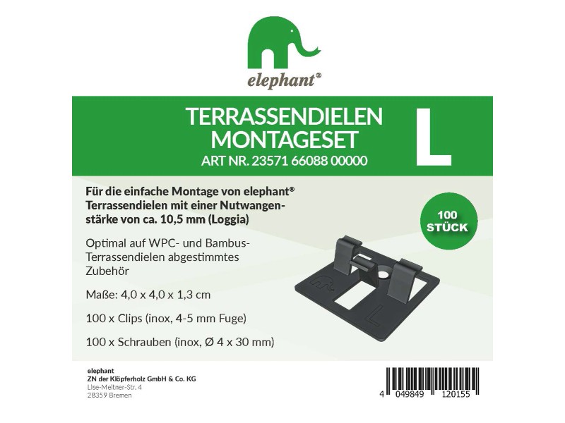 Professioneller Terrassenbau ganz einfach! Diese 100 Edelstahl-Clips machen die Verlegung von WPC- und Bambus-Terrassendielen zum Kinderspiel. Mit spezieller Widerhaken-Technologie für extrem stabilen Halt selbst bei 4mm Dehnungsfugen. Die Clips gleichen Temperaturschwankungen perfekt aus und verhindern unschönes Verziehen der Dielen. Im praktischen Komplett-Set: 100 Clips plus 100 passende Edelstahl-Schrauben (4x30mm). Erhältlich in 7mm Klemmbereich für verschiedene Dielenstärken. Die schwarze, fein polierte Oberfläche ist nicht nur korrosionsbeständig, sondern sieht auch noch super aus. Ideal für DIY-Projekte, Gartenpavillons oder professionelle Terrassen-Verlegung. Mit diesem Set wird Deine Terrasse zum echten Hingucker - langlebig, stabil und absolut professionell!