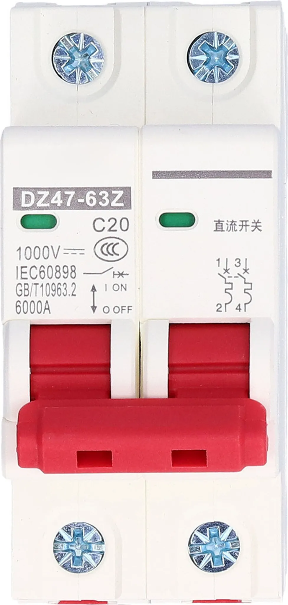 Wichtig für alle Solar-Besitzer! Dieser DC Leistungsschalter schützt deine Photovoltaik-Anlage zuverlässig. Nennstrom: 63A, Spannung: DC 1000V - perfekt für Solaranlagen. 2-polig für maximale Sicherheit - schützt vor Überlast und Kurzschluss. Einfach auf 35mm DIN-Schiene klicken - Montage in Sekunden. Aus hochwertigem PA66 Material - hitzebeständig und langlebig. Kurzschluss-Ausschaltvermögen: 6000A - absolute Profi-Qualität. Ideal für PV-Anlagen, Elektroautos oder Boote - überall wo Gleichstrom fließt. Mit Schraubklemmen - sicherer Kontakt garantiert. Magnetisches Auslösesystem - blitzschnelle Reaktion bei Störungen. Deutsche Normen - entspricht allen Sicherheitsanforderungen. Ein Muss für jede Solar-Installation - schützt deine Investition. Auch für Elektromotorräder oder industrielle DC-Anwendungen geeignet. Einfach den alten Schalter raus, neuen rein - fertig! Qualität, auf die du dich verlassen kannst - jahrelang störungsfreier Betrieb. Deine Solaranlage sicher geschützt - das gibt ruhigen Schlaf!