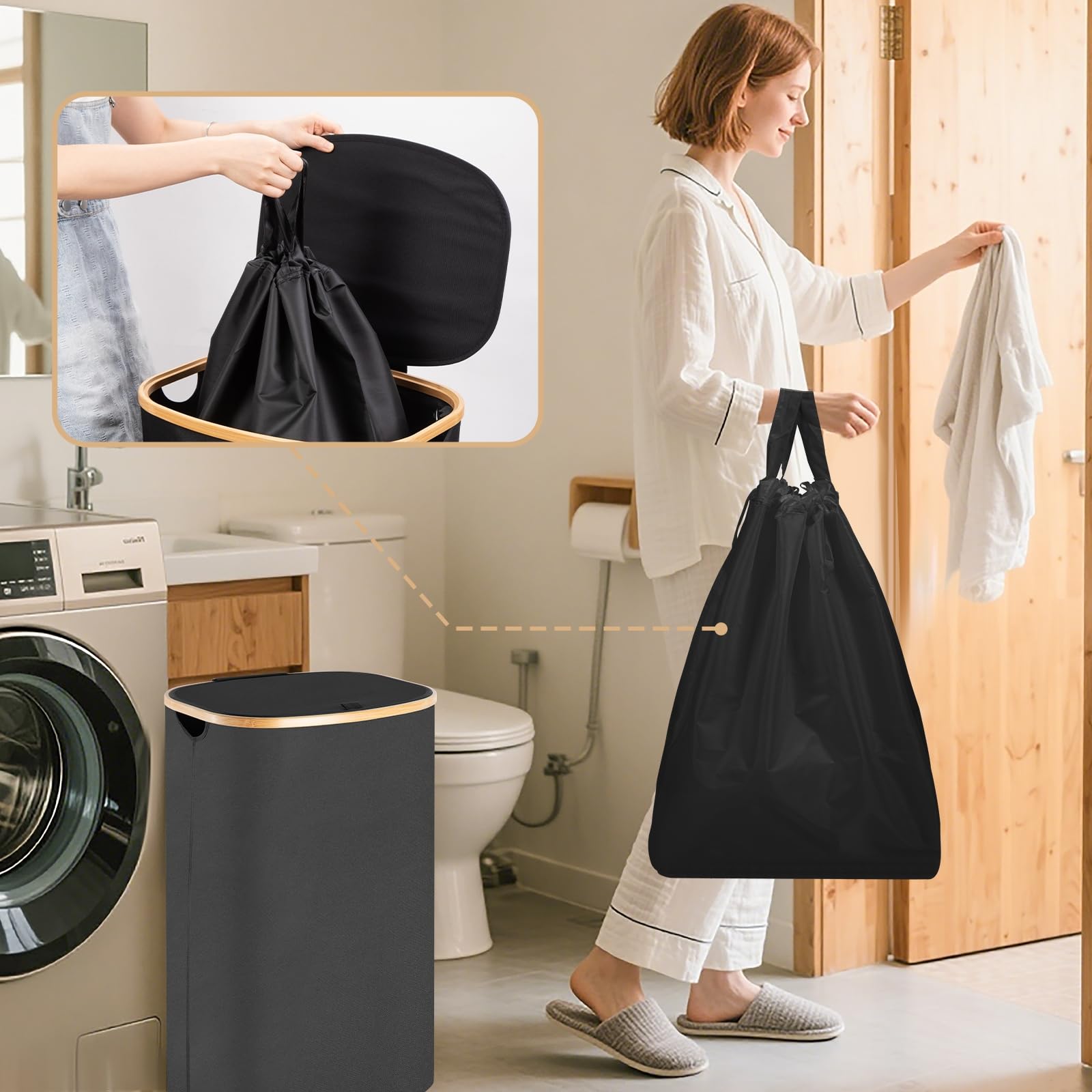Dieser AIKVIGSS Wäschekorb ist nicht nur praktisch, sondern sieht auch noch richtig gut aus! Mit 100 Litern Fassungsvermögen und den Maßen 44x33x73 cm passt eine Menge Wäsche rein. Der schmale, hohe Design spart Platz und sieht trotzdem edel aus - besonders mit den Bambusgriffen und dem Bambusrand. Der abnehmbare, waschbare Innensack macht das Leeren super einfach, und der Deckel hält Gerüche in Schach. Das Beste: Er ist faltbar! Wenn er nicht gebraucht wird, klappt ihr ihn einfach zusammen - dann ist er nur noch 3,5 cm flach. Perfekt für Waschküche, Schlafzimmer, Studentenwohnheim oder wenn mal Gäste kommen. Die 4 abnehmbaren Stangen machen Auf- und Abbau zum Kinderspiel. Die Bambusgriffe sind nicht nur stylisch, sondern auch ergonomisch und tragefreundlich. Ideal für Wäsche, Spielzeug, Handtücher oder als stylischer Aufbewahrungskorb. Ein echter Hingucker der sich praktisch verstecken lässt!