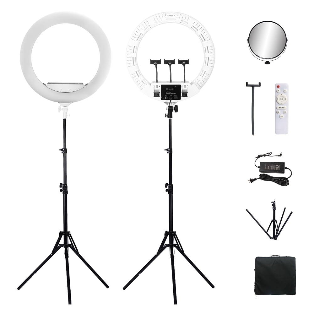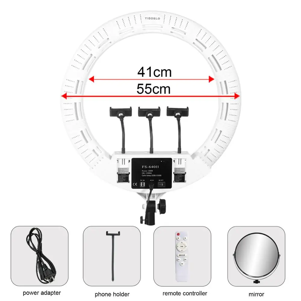 Perfektes Licht für deine Selfies, Videos und Live-Streams! Dieses 22-Zoll-Ringlicht mit 100W Power macht jeden zum Star. Einfach per Fernbedienung (bis 10m Reichweite) Helligkeit und Farbtemperatur von 3200K bis 5500K einstellen - ob warmes gemütliches Licht oder kühles Tageslicht. Mit dabei: Smartphone-Halterung, Schminkspiegel und praktische Tragetasche. Super für Make-up-Tutorials, YouTube-Videos, TikTok-Clips oder Video-Calls. Der hohe CRI von über 95RA sorgt für natürliche Farben - deine Haut sieht einfach perfekt aus! Kein Flackern, keine Schatten - nur professionelles Licht. Das Ringlicht passt auf jedes Stativ und die USB-Anschlüsse laden dein Handy während des Streamings. Ob für zu Hause, im Studio oder unterwegs - mit diesem Licht siehst du immer top aus! Einfach aufbauen, einschalten und strahlen! Kein teures Equipment nötig - alles dabei, was du brauchst.