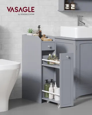 Endlich Ordnung im Bad! Dieser elegante Badezimmerschrank von VASAGLE bringt Stauraum und Style in dein Badezimmer. Mit 100cm Höhe und schlankem Design passt er perfekt auch in kleinere Bäder. Die integrierte Steckdosenleiste mit 2 AC- und 2 USB-Anschlüssen ist super praktisch für Rasierer, Zahnbürste & Co. Verstellbare Einlegeböden und Schubladen bieten Platz für alles - von Toilettenpapier bis Kosmetik. Aus robustem MDF gefertigt und mit Kippschutz für maximale Sicherheit. Die Montage ist dank klarer Anleitung und werkzeugloser Schubladen ein Kinderspiel. Perfekt für alle, die ihr Bad aufräumen und modernisieren wollen!