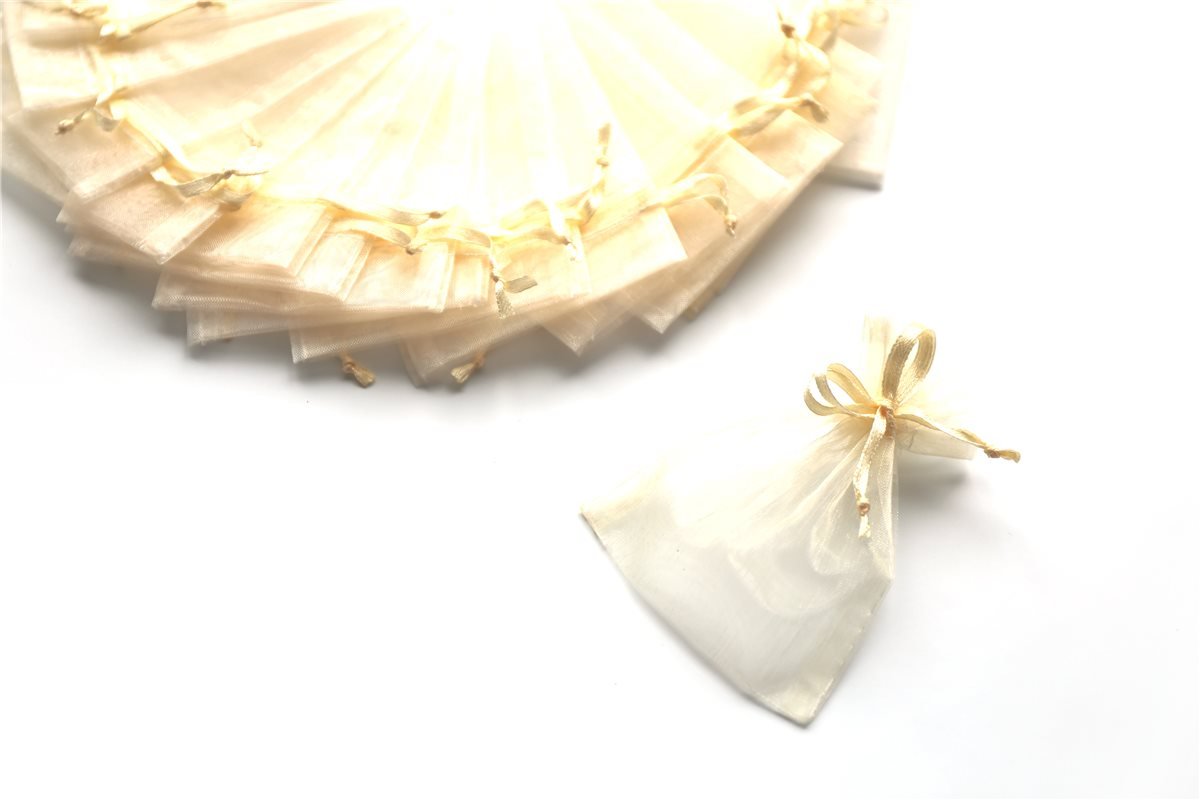 Perfekt für die Verpackung von Gastgeschenken, Taufmandeln oder Schmuck! Diese zarten Organzabeutel in creme sehen einfach edel aus. Mit den Maßen 10x7,5cm passen problemlos 5 Mandeln oder kleiner Schmuck hinein. Die 100 Stück im Pack sind ideal für die Vorbereitung einer Hochzeit, Taufe oder anderen Feierlichkeiten. Einfach befüllen, zuziehen und verschönern - so einfach kann schöne Verpackung sein! Die transparente Organza-Optik lässt den Inhalt dekorativ durchschimmern. Ein echter Klassiker für alle, die Wert auf ansprechende Präsentation legen!