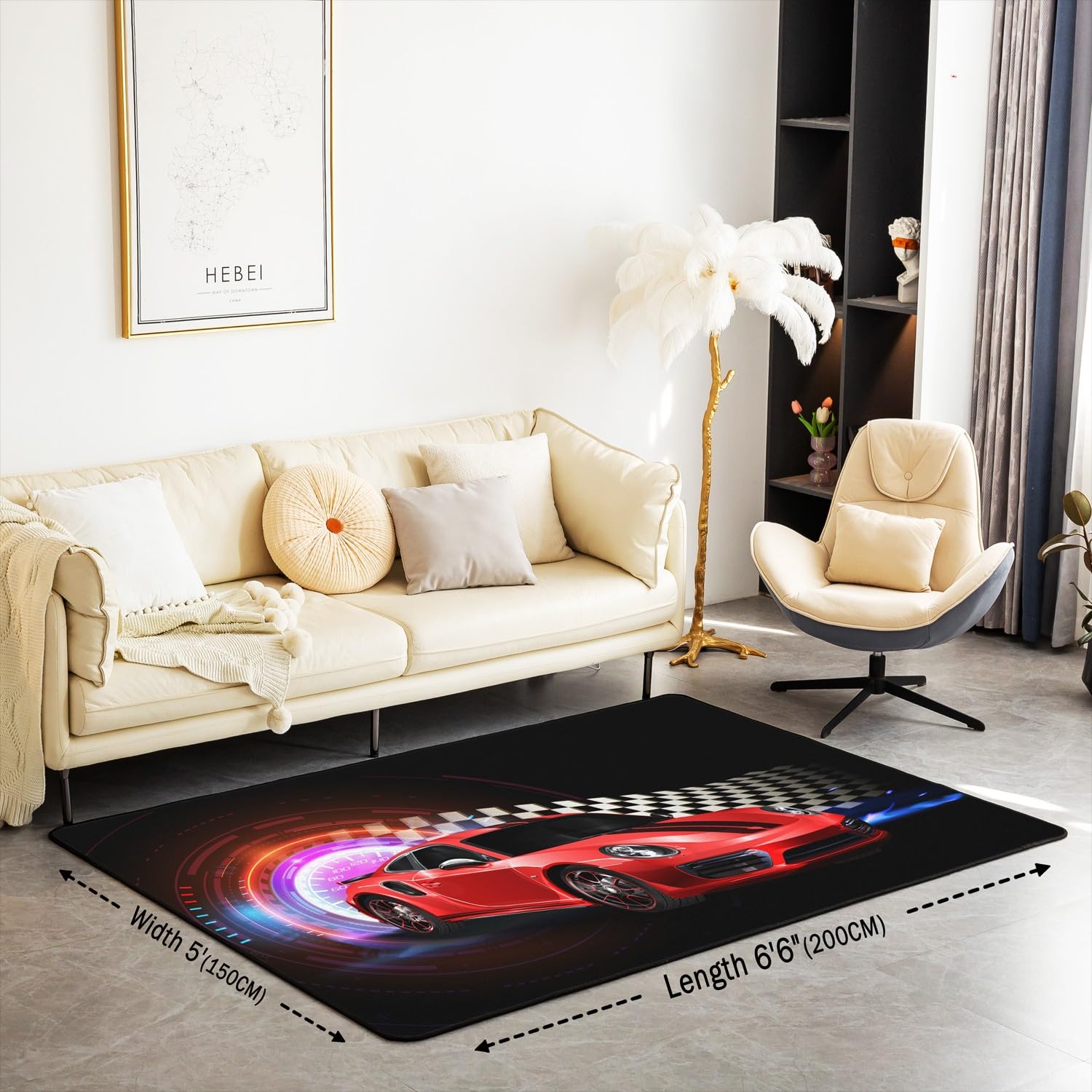 Vollgas für die Kinderzimmer-Einrichtung! Dieser Rennwagen-Teppich bringt Action und Spaß ins Kinderzimmer. Mit 100x150 cm ist er die perfekte Größe für mittlere Räume und bietet genug Platz zum Spielen. Das coole Rennstrecken-Design mit lebendigen Farben begeistert kleine Rennfahrer sofort. Die weiche Flanell-Oberfläche ist super kuschelig und angenehm zum Draufsitzen oder Spielen. Die rutschfeste Gummirückseite sorgt dafür, dass der Teppich nicht verrutscht - Sicherheit geht vor! Besonders praktisch: Der Teppich ist vielseitig einsetzbar - nicht nur im Kinderzimmer, sondern auch im Wohnzimmer, Spielzimmer oder sogar als Yogamatte. Wenn er nach dem Auspacken etwas Falten hat, einfach bügeln oder ein paar Tage auslegen. Leicht zu reinigen - einfach ausschütteln, staubsaugen oder Flecken mit Wasser und Seife entfernen. Ein tolles Geschenk für kleine Autofans zu Geburtstag, Weihnachten oder einfach so. Mach dein Zuhause zum Rennparadies!