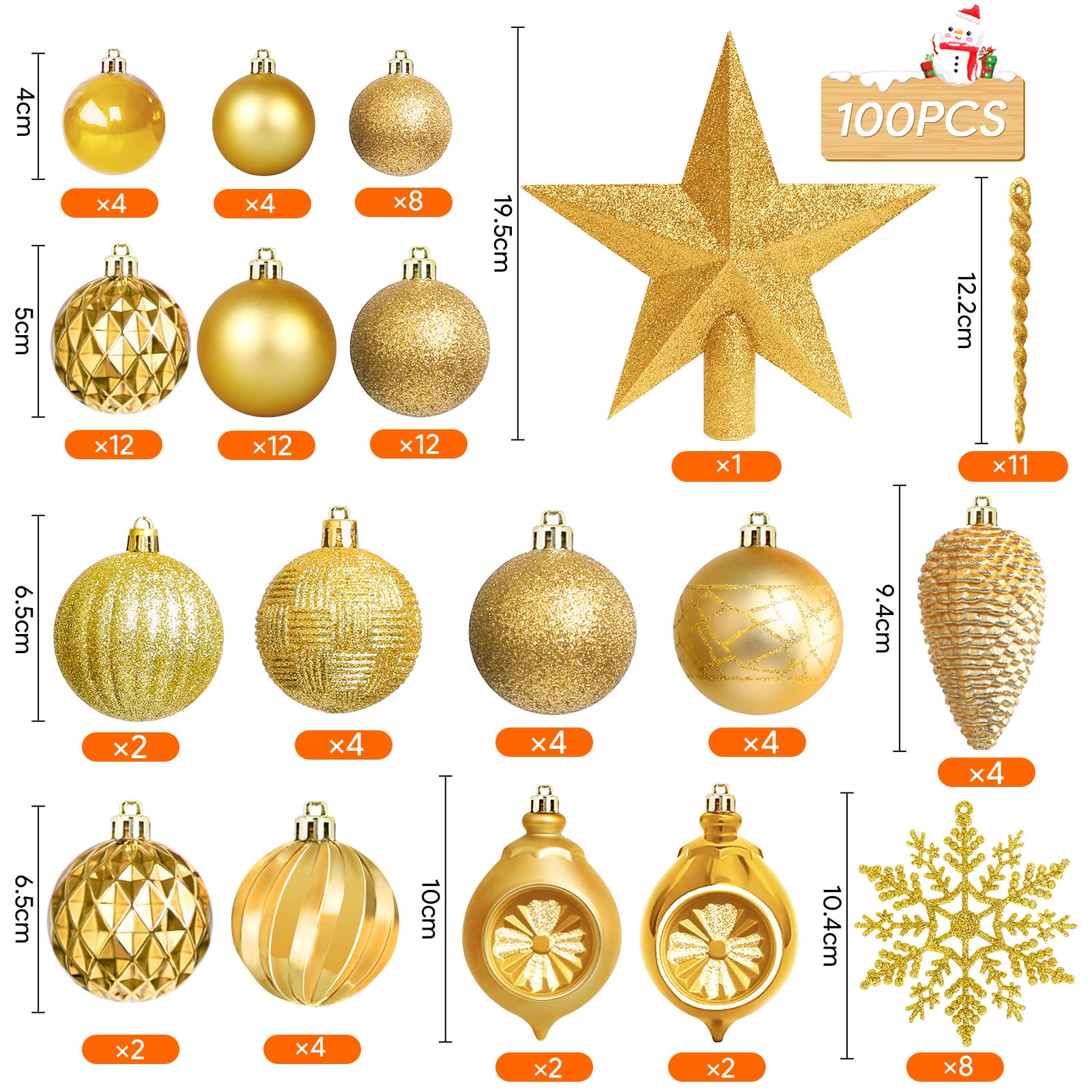 108 Weihnachtskugeln Set Gold - Christbaumkugeln Aus Kunststoff