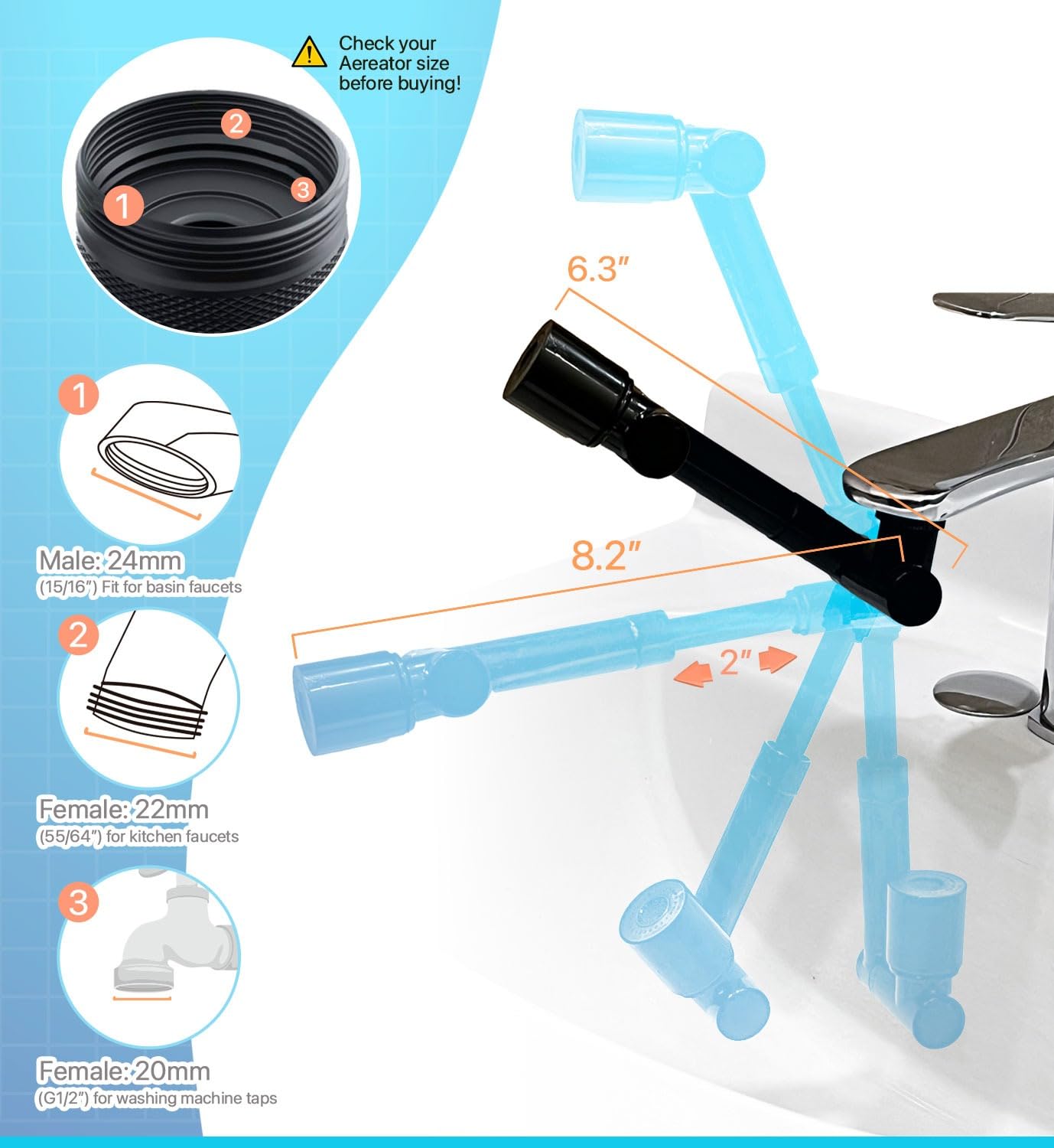 Endlich mehr Komfort am Waschbecken! Der Flexiflow Wasserhahn-Extender mit 1080° Drehfunktion macht jeden Wasserhahn vielseitiger. Er lässt sich in alle Richtungen bewegen - nach oben, unten, zur Seite - für optimale Reichweite. Mit zwei praktischen Wasserfunktionen: sanfter Strahl fürs Händewaschen und kräftiger Strahl fürs Spülen. Aus Metalllegierung und Edelstahl gefertigt, ist er robust und langlebig. Mit Innen- und Außengewinde passt er an die meisten gängigen Wasserhähne in Küche und Bad. Einfach aufschrauben - keine Werkzeuge nötig! Mit 15x8x6,5cm kompakt, aber mit großer Wirkung. Ideal zum bequemeren Händewaschen, Zähneputzen, Rasierern reinigen oder Gefäße befüllen. Besonders praktisch für Familien mit Kindern oder wenn das Waschbecken mal wieder zu voll ist. Mehr Beweglichkeit, weniger Spritzwasser - so einfach kann Komfort sein. Mach deinen Wasserhahn zum Allround-Talent!