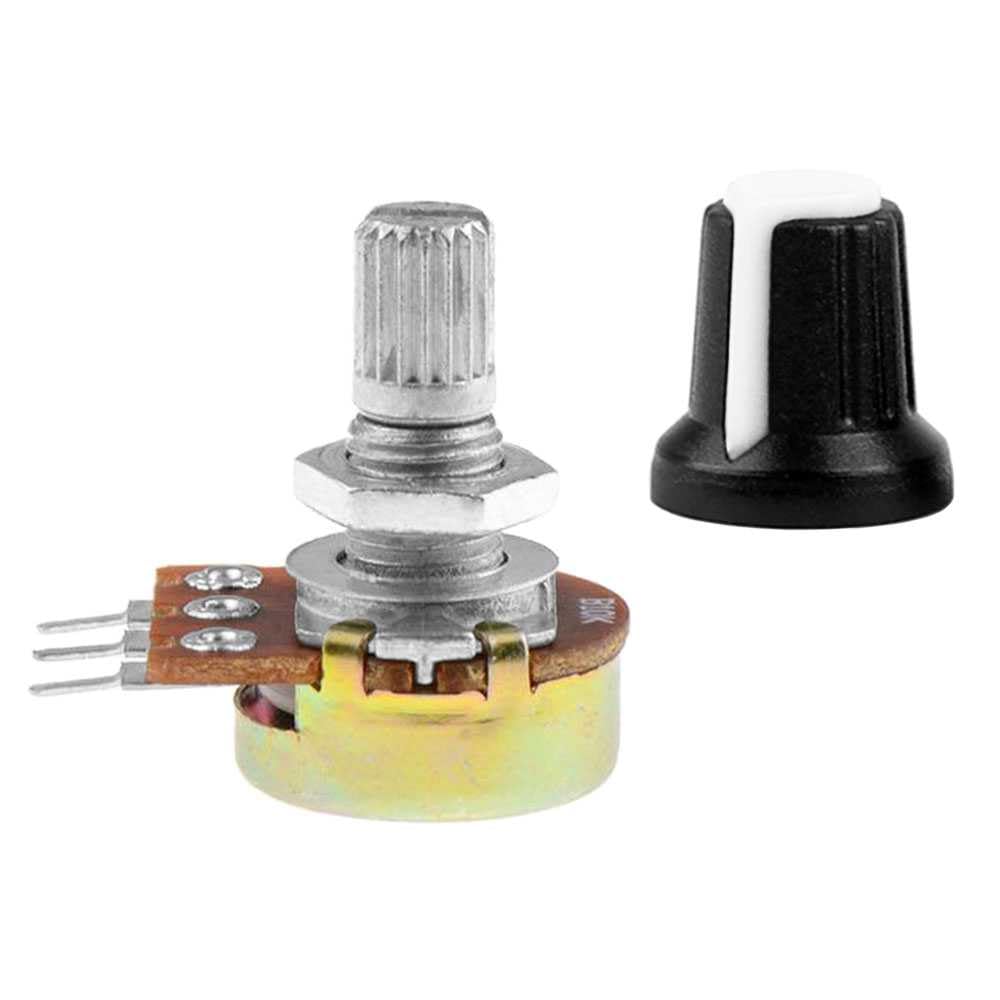 Jedes Potentiometer hat eine Rändelwelle für einfache Bedienung und wird mit praktischem Knopf geliefert (15x17mm). Die Gesamtlänge beträgt 31mm, das Material ist Metall und Kohlefolie für Langlebigkeit.