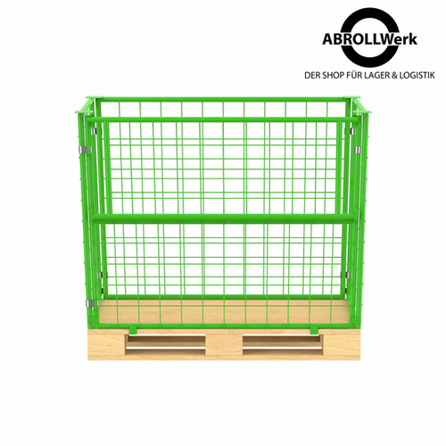 Praktische Gitteraufsatzrahmen im 10er-Pack! Maße 1200x800x1000mm passend für Standard-Europaletten. Aus stabilem Stahlrohr Ø22mm mit 50x50mm Maschung. Die maigrüne Pulverbeschichtung sieht gut aus und schützt vor Rost. Mit praktischer Klappe an der Längsseite für einfache Entnahme. Stapelbar auf den 4 Fangtellern für platzsparende Lagerung. Als 2.Ware mit leichten Gebrauchsspuren und Flugrost - aber voll funktionstüchtig und stabil. Perfekt um Paletten zu praktischen Lagerbehältern umzurüsten. Ideal für Lager, Werkstatt oder Produktion. Robuste Konstruktion für hohe Belastungen. Macht deine Lagerorganisation effizienter und platzsparender!