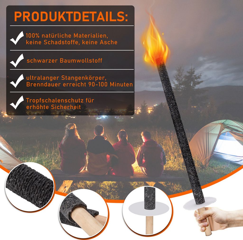 Stell dir vor, dein Garten verwandelt sich in eine magische Lichterwelt! Mit diesen 72cm langen Wachsfackeln von Monucep holst du dir ganz einfach gemütliche Atmosphäre nach Hause. Das 10er-Set ist perfekt für Gartenpartys, Nachtwanderungen oder gemütliche Abende im Freien.\\n\\nJede Fackel brennt bis zu 100 Minuten - das reicht für einen ganzen Abend voller Gemütlichkeit! Der extra lange Griff und der praktische Tropfschutz sorgen dafür, dass kein heißes Wachs auf deine Hände tropft. Super sicher also, auch für Kinder.\\n\\nWas diese Fackeln besonders macht:\\n• 100% natürliche Materialien - ohne chemische Zusätze\\n• Entwickelt keinen Rauch\\n• Mit Holzstab und Tropfschutz\\n• Extra langer Griff für einfachen Transport\\n• Auch Monate nach Kauf noch verwendbar\\n\\nPerfekt für: Gartenfeste, Geburtstage, Hochzeiten, Martinstag, Weihnachten, Silvester oder einfach nur für romantische Abende zu zweit. Kauf am besten gleich im Bundle - so hast du immer genug Fackeln auf Vorrat und sparst dabei noch Geld. Mach deine nächste Party unvergesslich mit dieser stimmungsvollen Beleuchtung!