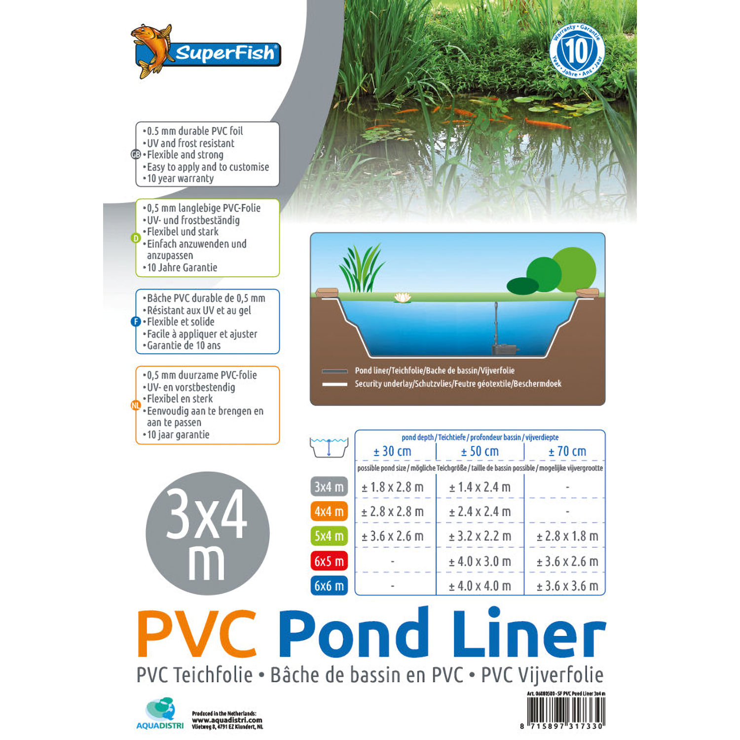 Hallo Teichbesitzer! Diese Malloom Teichfolie ist genau das Richtige für dein nächstes Gartenprojekt! Mit 10x13 Fuß (ca. 3x4 Meter) und 20 Mil Stärke ist sie robust und langlebig. Aus HDPE gefertigt, widersteht sie Einstichen, Rissen und UV-Strahlung - hält also viele Jahre! Einfach zu verlegen und an deine Teichform anzupassen. Perfekt für Koiteiche, Fischteiche, Wasserfälle oder Springbrunnen. Im Vergleich zu LDPE-Folien ist sie deutlich auslaufsicherer - kein Ärger mit undichten Stellen! Die glatte Oberfläche macht die Reinigung super einfach und verhindert Sedimentablagerungen. Ob für den Hobby-Garten oder gewerbliche Nutzung - diese Folie macht ihren Job richtig gut. Schaff dir deine eigene Wasser-Oase im Garten - mit dieser Qualitätsfolie klappt's bestimmt!