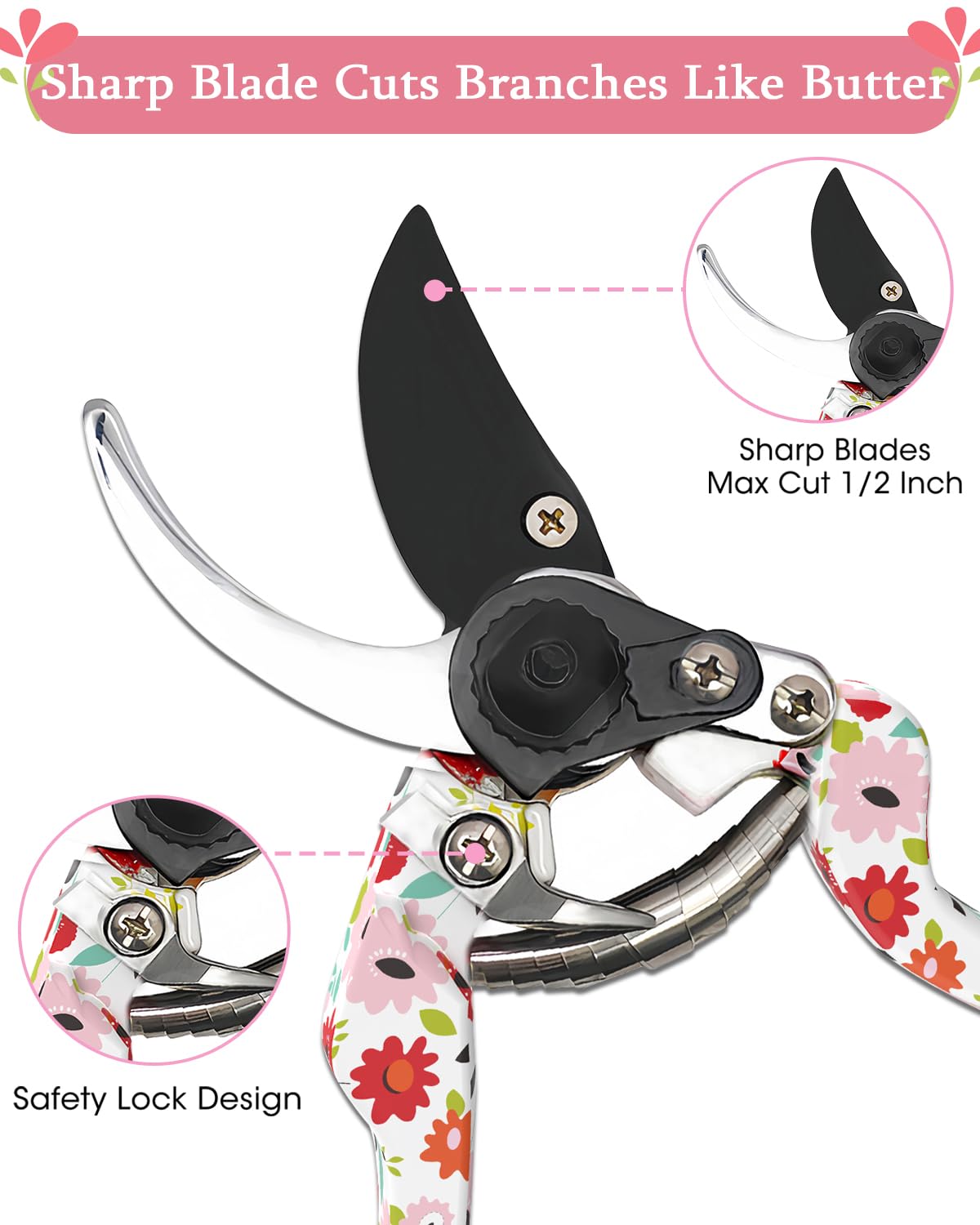 Die Werkzeuge sind aus hochwertiger Aluminiumlegierung gefertigt - rostfrei, super stabil und langlebig. Die schönen Drucke auf den Geräten machen das Set zu einem echten Hingucker. Die ergonomischen Gummigriffe liegen gut in der Hand und ermüden nicht so schnell.
