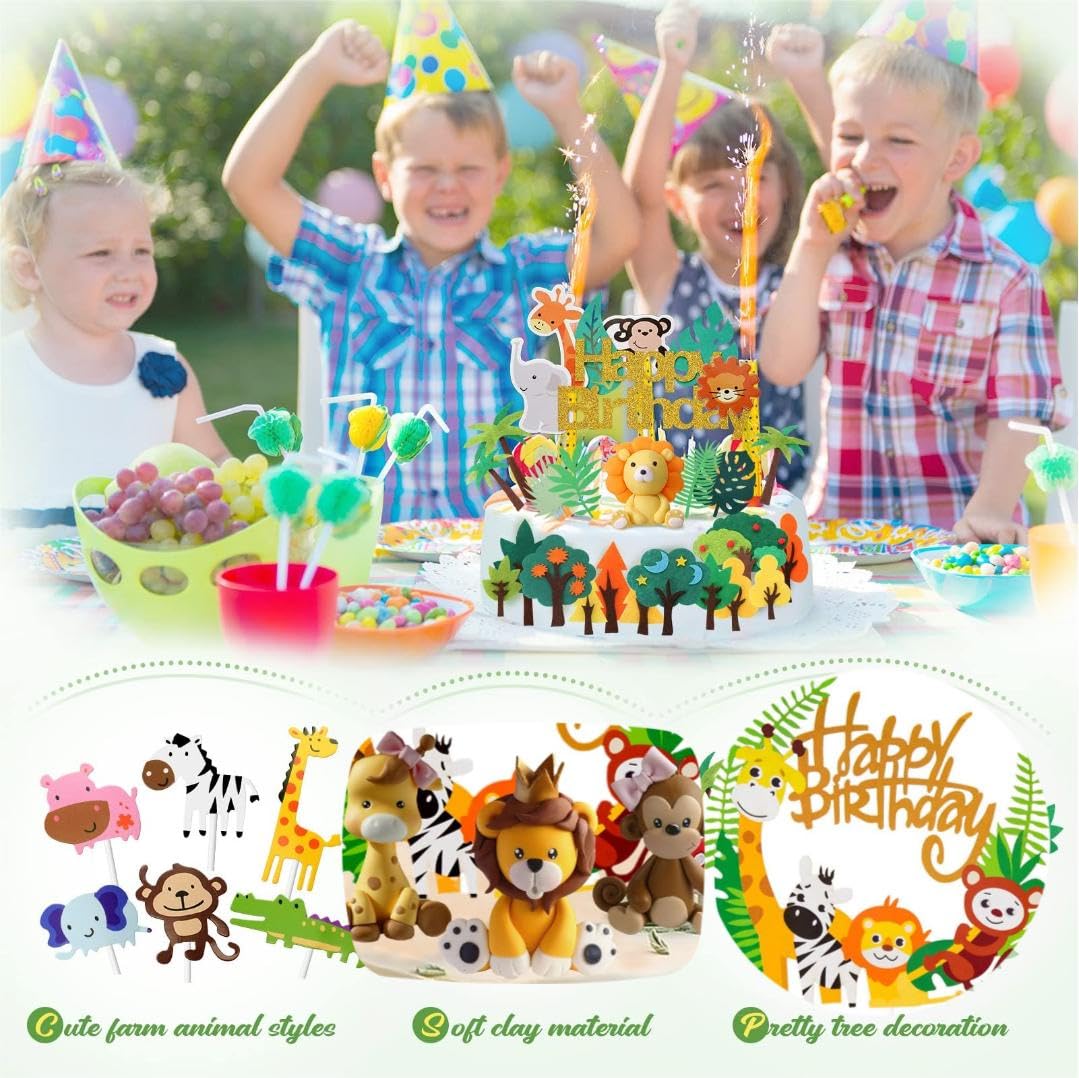 Ab in den Dschungel! Dieses niedliche 11-teilige Set mit Giraffe, Löwe, Affe und anderen Waldtieren macht jede Geburtstagstorte zum absoluten Highlight. Einfach die Figuren mit den mitgelieferten Stäbchen in den Kuchen stecken - schon verwandelst du eine einfache Torte in eine Safari-Abenteuer! Aus sicherem PVC, ungiftig und speichelfest. Aber Achtung: Nicht essbar und nicht für Mikrowelle oder Ofen geeignet! Perfekt für den 1. Geburtstag, Dschungel-Partys oder als Tischdekoration. Nach der Feier einfach abwaschen und für die nächste Party aufbewahren. Die bunten Farben begeistern die Kleinen und die Qualität überzeugt auch die Großen. Schafft unvergessliche Fotomotive und strahlende Kinderaugen! Unter 3 Jahren nur mit Aufsicht verwenden.