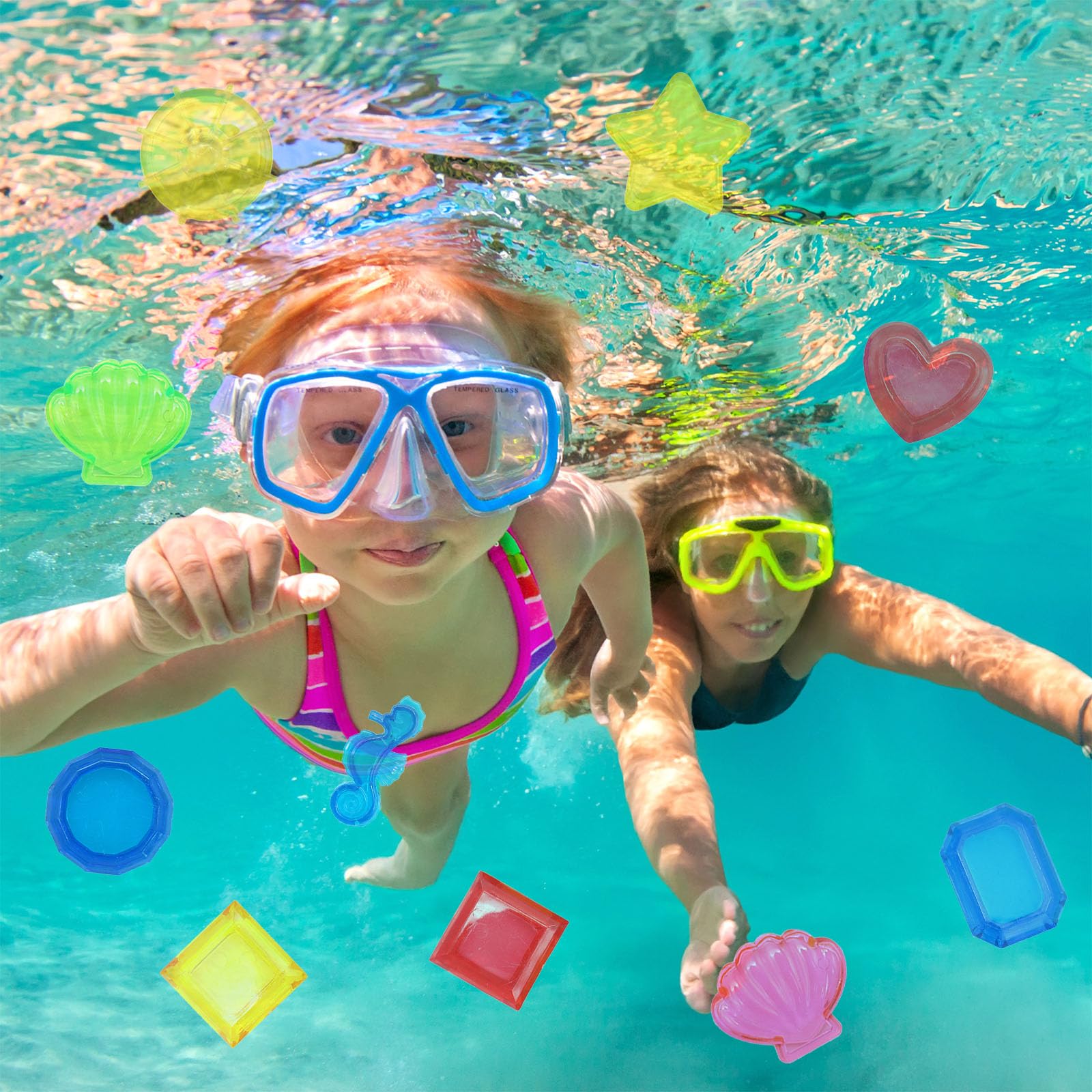 Tauchabenteuer für kleine Wasserratten! Dieses Set enthält 110 bunte Acryl-„Edelsteine“ in Form von Muscheln, Seesternen und Co. Die Steine sind absolut ungiftig, geruchsneutral und haben abgerundete Kanten – also sicher für Kinderhände. Einfach ins Wasser werfen und schon können die Kleinen nach Herzenslust nach Schätzen tauchen. Das fördert nicht nur die Hand-Auge-Koordination, sondern auch die Freude am Schwimmen und Planschen. Aber Achtung: Nicht für Kinder unter 3 Jahren geeignet – Verschluckungsgefahr! Die leuchtenden Farben und Formen machen aber nicht nur im Pool oder am Strand eine gute Figur – auch als Deko für Vasen, Aquarien oder Fensterbank eignen sie sich super. Perfekt für Poolpartys, Strandausflüge oder Eltern-Kind-Spiele. Einfach abtrocknen und wiederverwenden – so macht Wasserspaß lange Freude. Und das Beste: Die Aufbewahrung ist kein Problem, denn die Steine sind leicht und platzsparend. Einfach genial für kreative Spiele im und am Wasser!