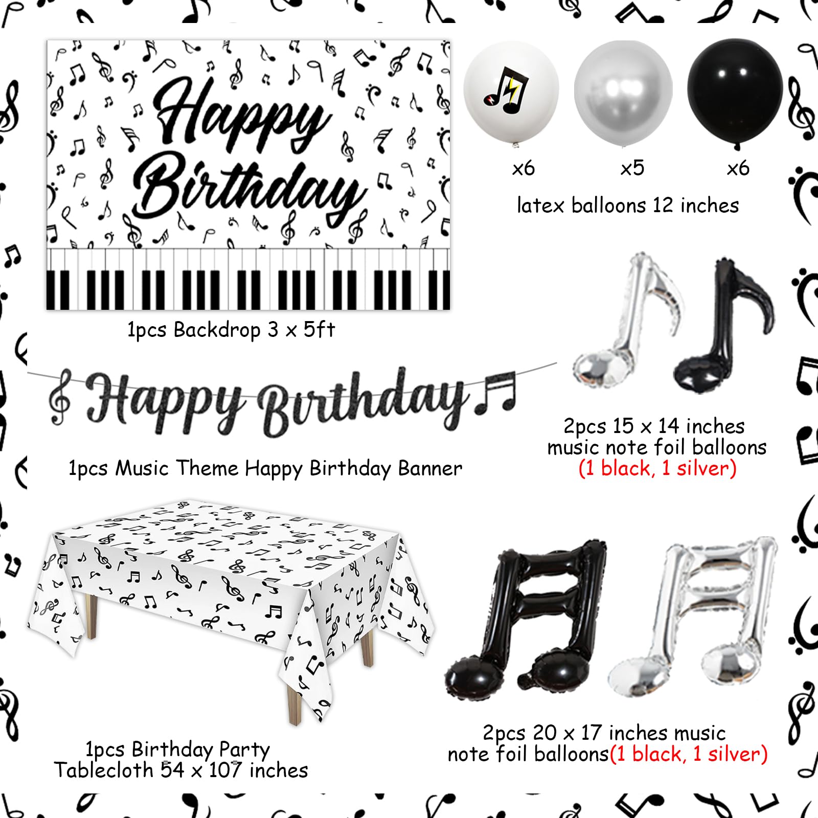 Suchst du die perfekte Deko für deine nächste Musik-Party? Diese 8 Musiknoten-Girlanden bringen sofort Stimmung in deine Feier! Jedes Banner ist 115cm lang und hat 7 verschiedene schwarze Musiknoten-Designs im Abstand von 5cm. Der doppelseitige Druck sorgt dafür, dass die Deko von überall gut aussieht.