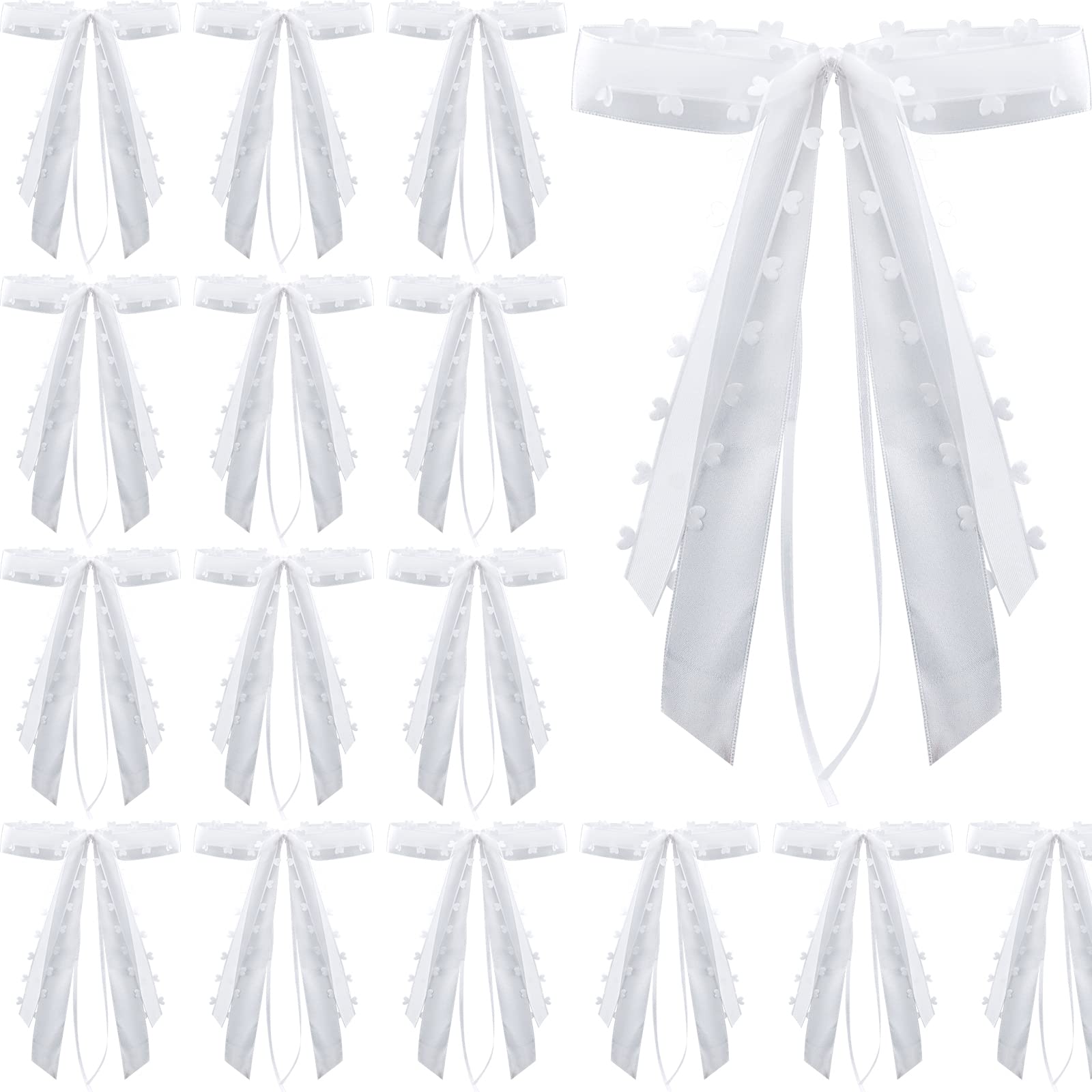 Macht jedes Hochzeitsauto zum Hingucker! Dieses Set mit 12 weißen Schleifen ist perfekt für deine Hochzeitsdekoration. Jede Schleife ist 26x16 cm groß und hat ein süßes Herz-Design am Rand. Aus hochwertigem Polyester-Satin gefertigt, sehen sie richtig edel aus. Die Schleifen sind schon fertig geformt - einfach auspacken und verwenden! Perfekt für Rückspiegel, Türgriffe oder als Tischdeko. Wasserdicht und ungiftig, also absolut sicher. Passen an jedes Auto - ob Oldtimer oder moderner Wagen. Auch super für Geschenkverpackungen oder Blumensträuße. Damit wird deine Hochzeit unvergesslich schön!