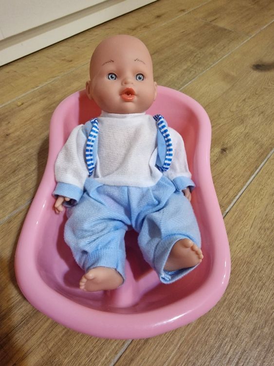 Eine süße Babypuppe zum Liebhaben! 12 Zoll groß mit realistischen Details, rosigen Wangen und blauen Augen. Im Set: 3-teiliges Outfit (Bodysuit, Jacke, Shorts), 4 Accessoires (Hut, Stiefel, Schnuller) und Fütterungsset mit Schüssel und Flasche. Weiche, posable Gliedmaßen für realistisches Spiel. Aus kindersicheren, ungiftigen Materialien. Fördert Rollenspiel, Verantwortung und Empathie. Perfekt für Mädchen, die gerne Mama spielen. Ein wunderbares Geschenk das kreatives Spiel und Fürsorge fördert. Dein Kind wird diese Puppe lieben!