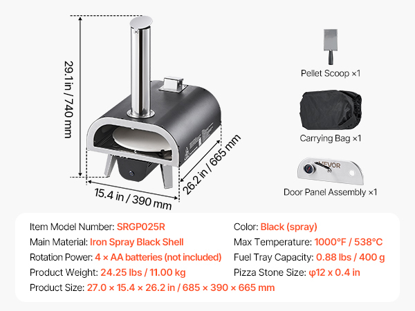VEVOR Pellet Pizzaofen Outdoor - 12 Zoll Tragbarer Pizzamaker Bis 540°C