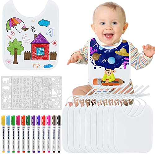 Hey, werdende Eltern aufgepasst! Dieses Rilcn Baby Lätzchen Bemal-Set macht jede Babyparty zum kreativen Erlebnis! Im Set enthalten: 8 weiße Kurzarm-Bodys aus weicher Baumwolle (Größe 1-3 Monate, 38 cm lang, 21 cm Brustweite), 4 doppellagige Lätzchen und 14 bunte Textilstifte mit Vorlagen. Die Gäste können ihrer Kreativität freien Lauf lassen und persönliche Designs für den Nachwuchs gestalten - ein wunderbares Andenken an diesen besonderen Tag! Die Bodys haben praktische Druckknöpfe für einfaches An- und Ausziehen, die Lätzchen sind innen aus weicher Baumwolle und außen wasserabweisend - perfekt gegen Sabber und Essensflecken. Nach dem Bemalen einfach 24 Stunden trocknen lassen, bügeln zur Fixierung und schon sind die Stücke waschbar und wiederverwendbar. Egal ob für Jungen, Mädchen oder neutral - dieses Set begeistert alle Gäste und ist das ideale Geschenk für die Babyparty. Kreativer Spaß garantiert!