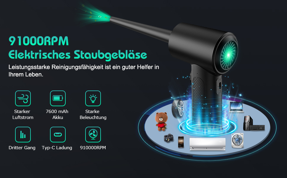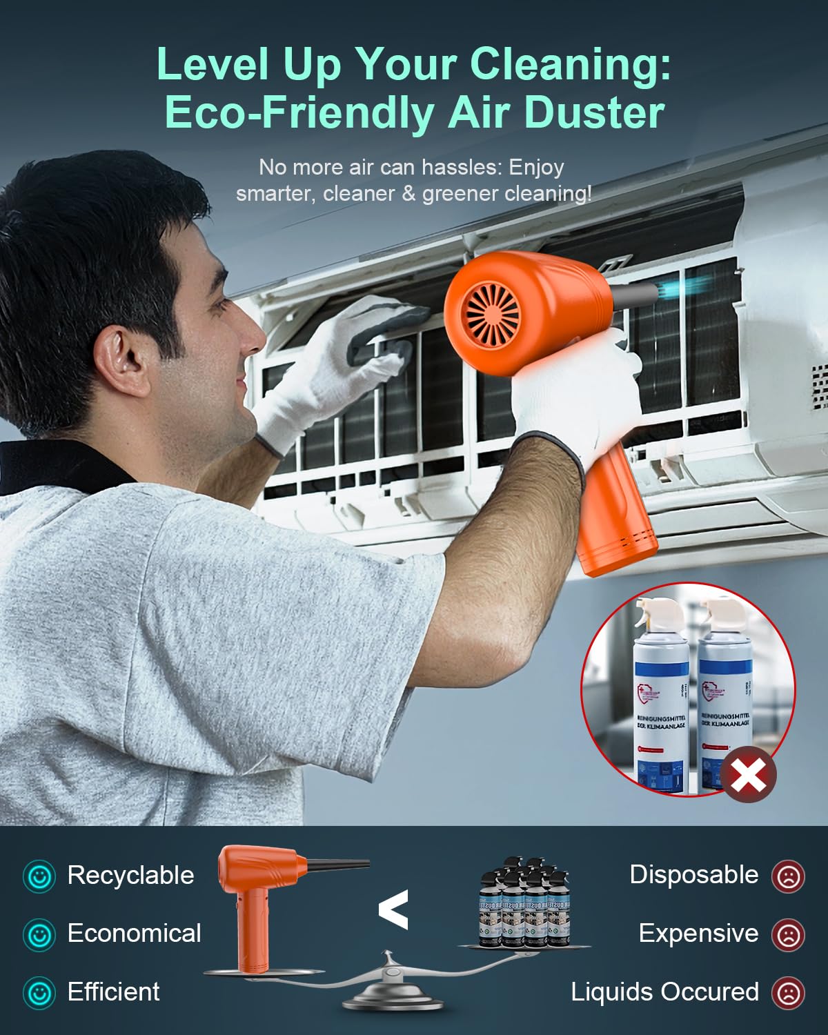 Boah, dieser elektrische Staubbläser ist einfach der Hammer! Mit sagenhaften 120.000 U/min pustet er jeden Staub aus den verstecktesten Ecken. Ob Tastatur, PC oder Auto - damit wird alles blitzsauber. Das Beste: Er ist komplett kabellos mit 9000mAh Akku, hält bis zu 40 Minuten durch! Drei Stufen hast du zur Auswahl, je nachdem wie stark du pusten willst. Mit den 11 Zubehörteilen (Düsen, Bürsten, sogar Pinzette!) kommst du überall ran. Und kein Vergleich zu diesen nervigen Druckluftdosen - der hier ist umweltfreundlich, wiederverwendbar und spart auf Dauer richtig Kohle. Das LED-Licht leuchtet dunkle Ecken aus, super praktisch! Perfekt für Zuhause, Büro oder Werkstatt. Einmal kaufen, jahrelang nutzen - das nenn ich smart!
