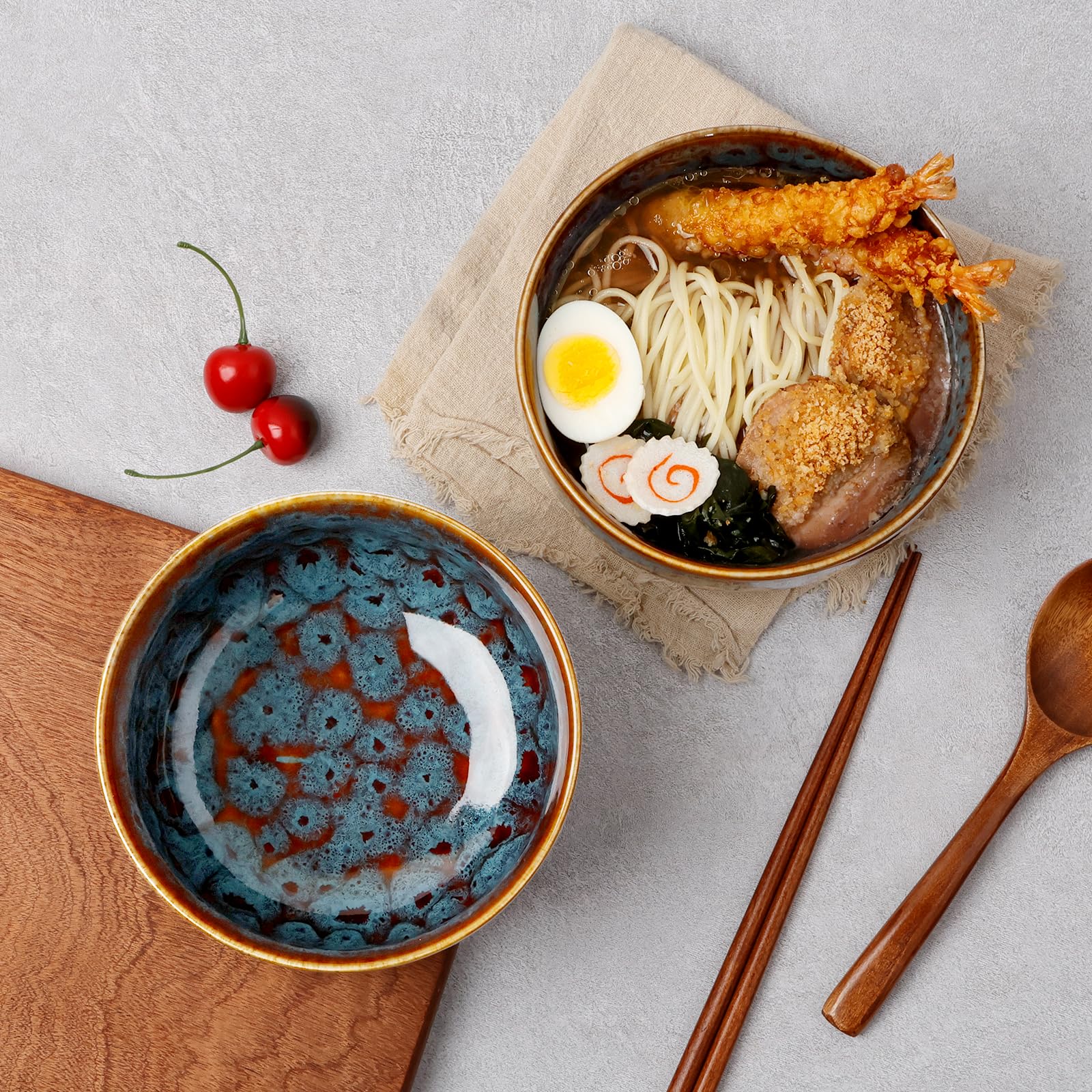 Ramen like in Japan! Dieses Auanlay Set mit 2 Ramenschüsseln aus Keramik ist einfach perfekt für Nudel-Liebhaber. Jede Schale hat 1200ml Fassungsvermögen - da passt reichlich Ramen, Brühe und Toppings rein. Mit 20cm Durchmesser und 8,9cm Höhe - ideal portioniert. Die reaktive Glasur macht jede Schale einzigartig - schöne blaue Farbe mit individuellen Nuancen. Im Set: 2 Schalen, 2 Löffel und 2 Paar Essstäbchen - alles dabei! Mikrowellen- und spülmaschinenfest - super praktisch für den Alltag. Bleifrei und ungiftig - absolut sicher für Lebensmittel. Stapelbar - spart Platz in der Küche. Perfect als Geschenk für Ramen-Fans, zum Einzug oder einfach für dich selbst. Macht jedes Nudelgericht zum Restaurant-Erlebnis! Einfach lecker und stylisch!