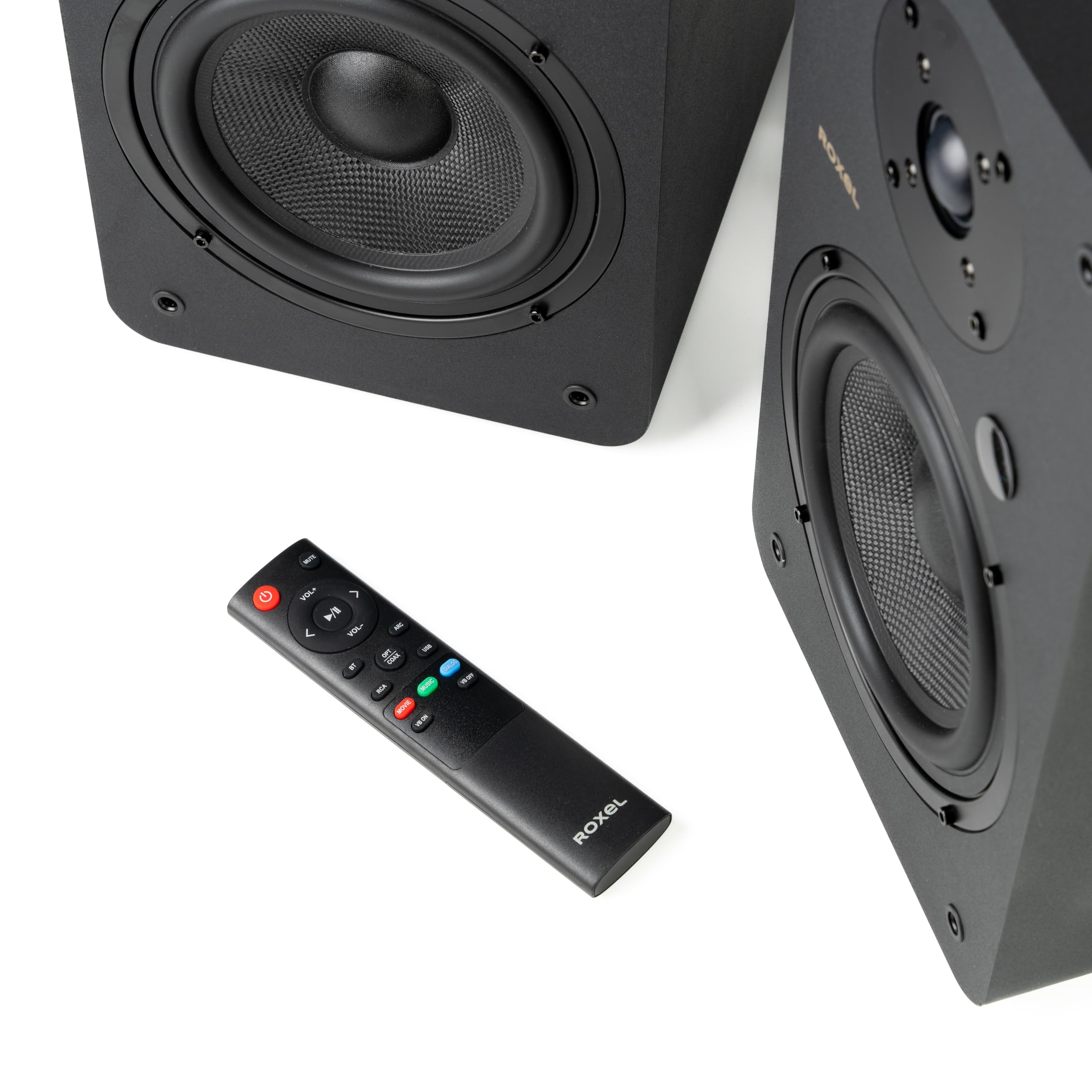 Kino-Feeling für dein Zuhause! 🎮 Die Roxel Onyx XL Lautsprecher bringen 120W Power in dein Wohnzimmer - mit allem was das Audiophile-Herz begehrt!\n\nTechnische Highlights:\n• 120W RMS Leistung\n• 16,5cm Bass-Treiber\n• 3,2cm Seidenkalotten-Hochtöner\n• Frequenzbereich: 45Hz - 20kHz\n\nAnschlussmöglichkeiten:\n- Bluetooth 5.3 (10m Reichweite)\n- HDMI ARC für TV\n- Optisch und Koaxial\n- USB und RCA\n\nBesondere Features:\n- Verstellbarer Bass und Höhen\n- DSP mit Film/Musik/Nachrichten-Modi\n- MDF-Gehäuse mit Stoffbezug\n- Maße: 200x250x352mm pro Box\n\nWarum sie so besonders sind:\n- Immersiver Sound für Filme\n- Klare Wiedergabe für Musik\n- Elegantes Design passt überall hin\n- Einfache Bedienung per Fernbedienung\n\nEgal ob du:\n- Filme schaust\n- Musik hörst\n- Zockst\n- Oder einfach nur genießt\n\nDiese Lautsprecher machen aus jedem Inhalt ein Erlebnis! Der Sound ist so klar und kräftig, dass du dich wie im Kino fühlst.\n\nWeißt du was? Deine Ohren werden dir danken - und deine Gäste werden beeindruckt sein! Hol dir das Kino-Feeling nach Hause - es lohnt sich! 🎬