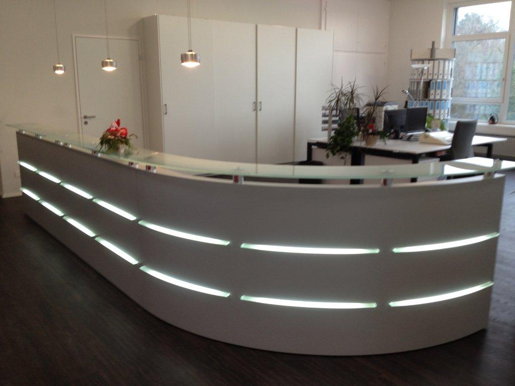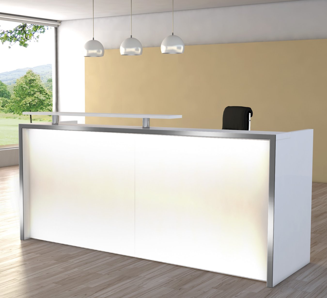 Das integrierte Beleuchtungssystem schafft eine warme, professionelle Atmosphäre. Ideal für Empfangsbereiche, wo der erste Eindruck zählt.