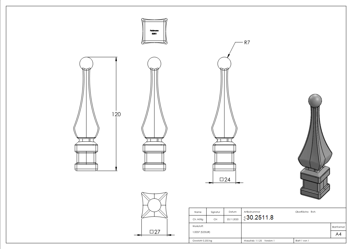 • Zaunspitze 18mm Rund - 125mm Hoch Aus Stahl S235JR