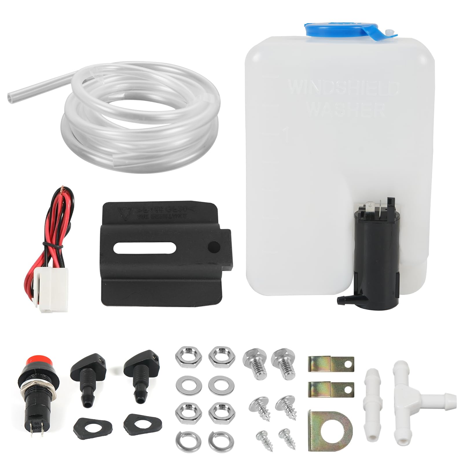 Perfekte Lösung für Oldtimer, Boote oder wenn deine originale Scheibenwaschanlage den Geist aufgegeben hat! Dieses 12V System mit 1,2 Liter Behälter und leistungsstarker Pumpe (140ml/min) macht deine Scheiben wieder blitzsauber. Komplett mit Montagehalterung, Doppeldüsen, Druckknopfschalter und allem nötigen Zubehör. Einfach installieren und schon hast du eine zuverlässige Scheibenreinigung. Wichtig: Nur mit reinem Wasser verwenden - kein Seifenwasser! Passt für viele Fahrzeuge und ersetzt OE-Nummer 110943769329. Ideal auch für Boote und Schiffe, wo zuverlässige Scheibenreinigung besonders wichtig ist. Einfach anklemmen, Behälter befüllen und bei Bedarf die Scheibe reinigen - praktischer geht's nicht! Hol dir klare Sicht zurück!