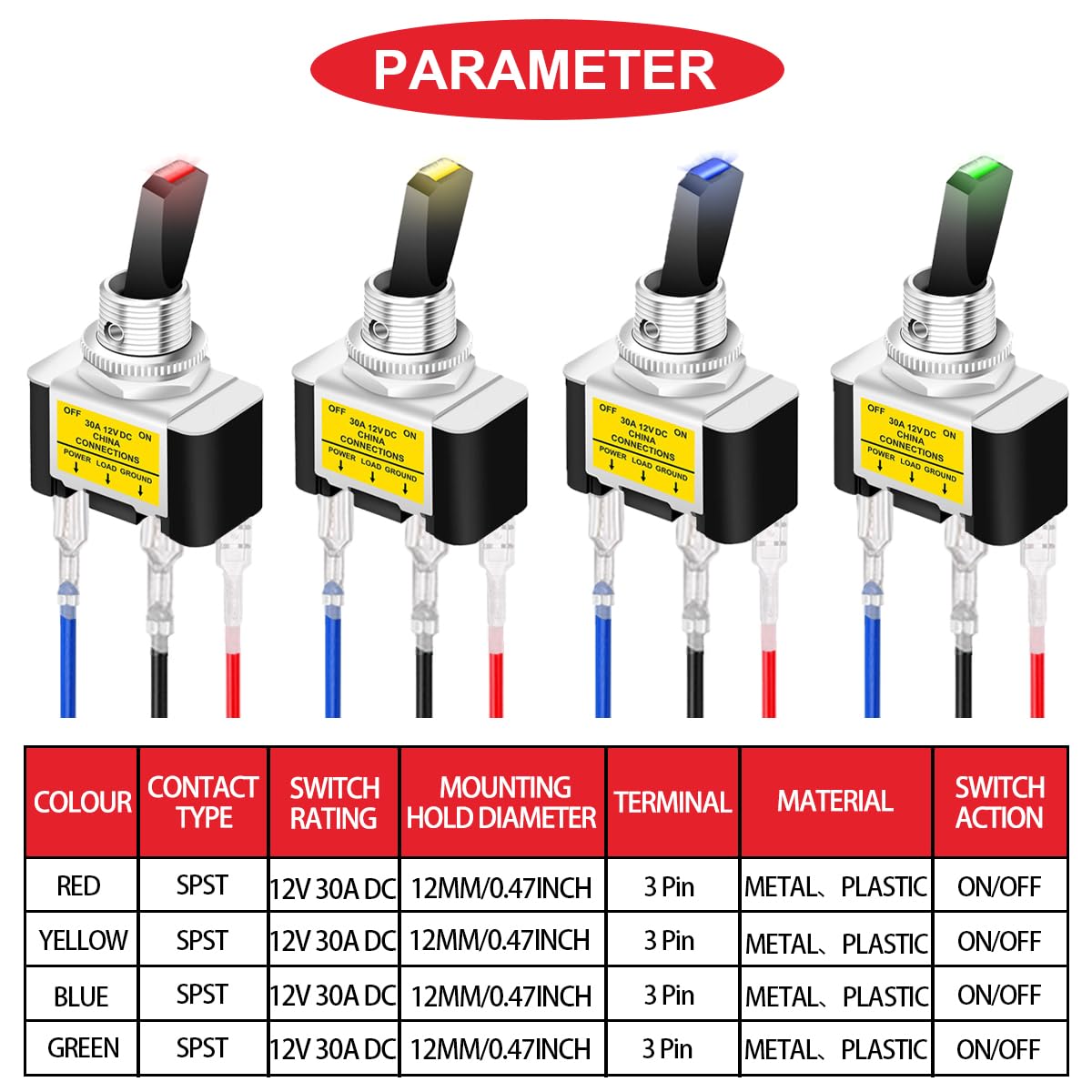 Für alle Bastler und Heimwerker: Diese Kippschalter sind perfekt für deine Elektroprojekte! Im 4er-Pack hast du genug für mehrere Vorhaben. Die Schalter arbeiten mit 12V Gleichstrom und halten bis zu 30A aus - also richtig viel Power! Das coole: Sie leuchten blau wenn sie eingeschaltet sind, siehst du also auch im Dunkeln sofort ob sie an oder aus sind. Mit 3 Pins und SPST Kontakttyp sind sie vielseitig einsetzbar. Die Montage ist super einfach: Einfach ein 12mm Loch bohren, Schalter reinschieben und die 120cm langen Anschlusskabel verdrahten. Perfekt für Auto, Boot, Wohnmobil, Motorrad oder auch für deine Heimwerkerei. Ob für Beleuchtung, Pumpen, Lüfter oder andere 12V Verbraucher - mit diesen Schaltern hast du alles unter Kontrolle. Die Qualität ist top, die Kabel sind bereits angelötet und die Schalter sitzen bombenfest. Einfach ein praktisches Set für alle die mit 12V Technik arbeiten!