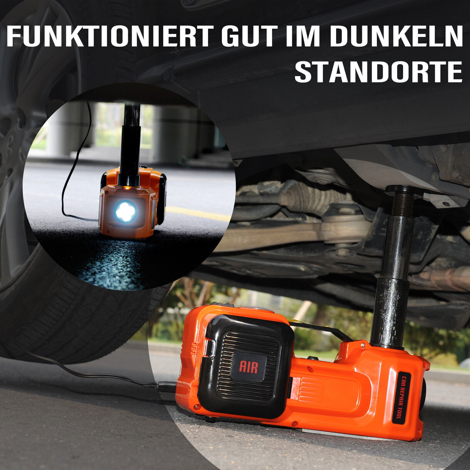 Panne? Reifen platt? Kein Stress! Mit dem Warmfay Elektro Wagenheber bist du in so einer Situation bestens ausgestattet. Der Kolben packt satte 5 Tonnen und hebt dein Auto, SUV oder sogar kleinen LKW mühelos von 155 mm auf 450 mm an. Das Beste? Du musst nicht wie verrückt pumpen - der macht das elektrisch für dich! In knapp 2 Minuten ist er oben. Aber er kann noch mehr: Eingebaute Luftpumpe, um den Reifen wieder aufzupumpen, LED-Licht für die Arbeit im Dunkeln und sogar ein Schlagschrauber ist dabei, um die Radmuttern locker zu kriegen. Du kannst ihn entweder über den Zigarettenanzünder im Auto oder direkt an der Batterie betreiben. Alles ist sicher verpackt in einer praktischen Box, die du einfach im Kofferraum verstauen kannst. Mit dem Teil bist du für fast jede Panne gewappnet - ein echter Lebensretter für unterwegs! Denk dran, immer auf ebenem Grund arbeiten.