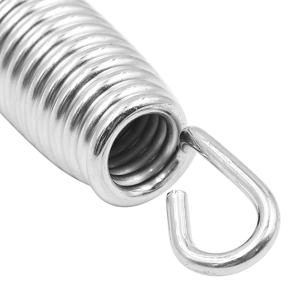 Dein Trampolin springt nicht mehr so gut wie früher? Diese 10 Trampolinfedern in 12cm Länge bringen neuen Schwung! Aus verzinktem Stahldraht gefertigt, sind sie rostbeständig und besonders langlebig. Die hervorragende Elastizität sorgt für ein sicheres und zuverlässiges Sprungverhalten. Im Lieferumfang ist sogar ein Karabinerhaken inklusive - super praktisch! Der Haken wurde wärmebehandelt und ist besonders robust. Das innovative Taillentrommel-Design bietet maximale Flexibilität und Belastbarkeit. Die glatte Oberfläche ohne Grate garantiert eine einfache Montage. Einfach die alten Federn austauschen und schon springt dein Trampolin wie neu! Perfekt für Heimtrampoline, aber auch für Freizeiteinrichtungen und Fitnessgeräte geeignet. Mach dein Trampolin wieder fit für den Sprungspaß!