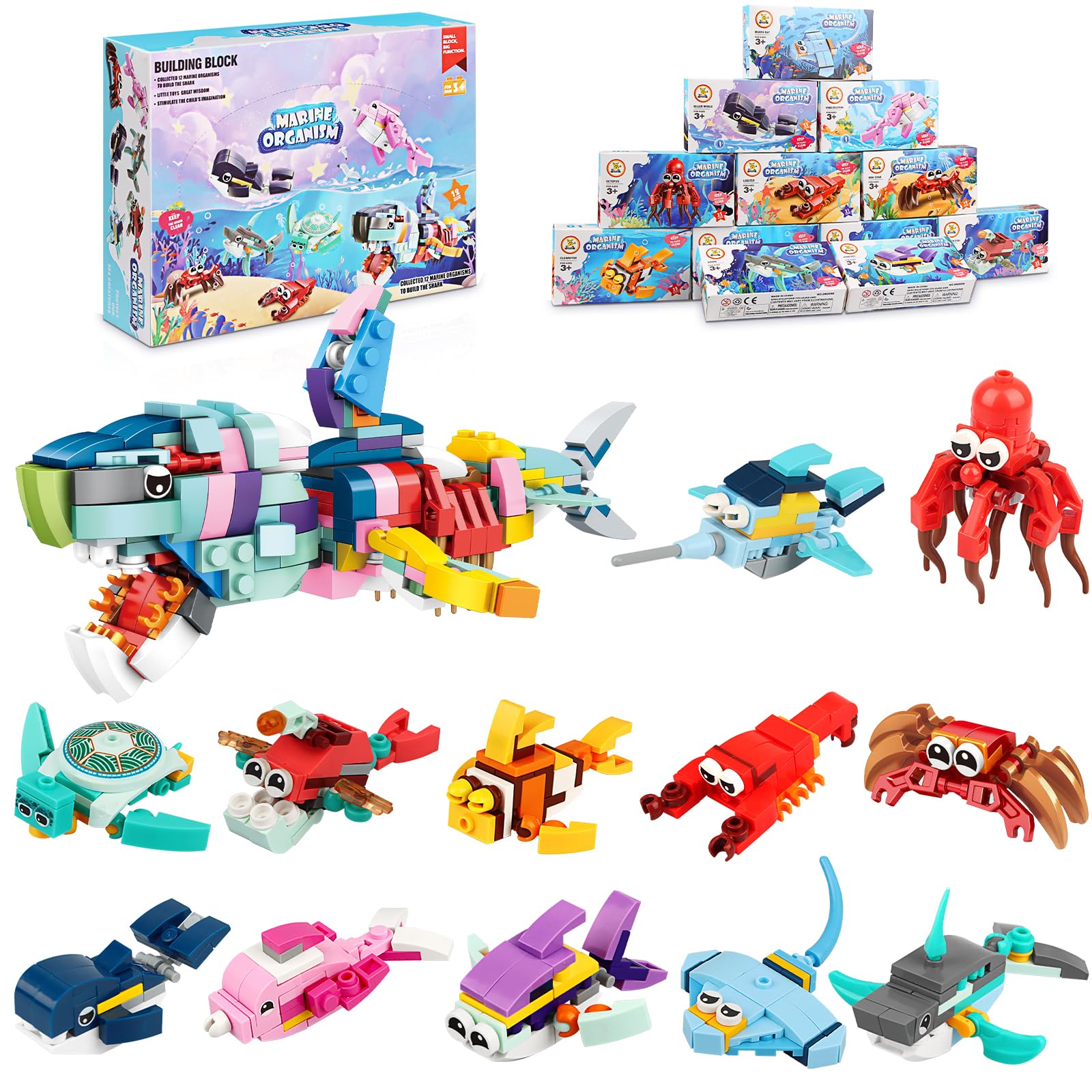 Diese süßen Meerestier-Bausteine sind das perfekte Mitgebsel für jeden Kindergeburtstag! Im 12er-Pack bekommst du verschiedene Meeresbewohner wie Wal, Teufelsfisch, Robbe, Oktopus, Hummer und viele mehr. Aus hochwertigem ABS-Material gefertigt, sind die Steine absolut ungiftig und haben glatte Kanten - perfekt für kleine Kinderhände ab 3 Jahren. Das Tolle: Die Kinder können nicht nur die 12 einzelnen Tiere bauen, sondern aus allen Steinen zusammen einen großen Hai konstruieren! So förderst du spielerisch die Feinmotorik, das kreative Denken und die Problemlösungsfähigkeiten der Kleinen. Jedes Set ist einzeln verpackt und enthält eine detaillierte Bauanleitung. Perfekt als Gastgeschenk für Geburtstage, Ostern, Weihnachten oder andere Feiern. Mach die nächste Kinderparty zu einem unvergesslichen Erlebnis mit diesen niedlichen Meerestier-Bausteinen!
