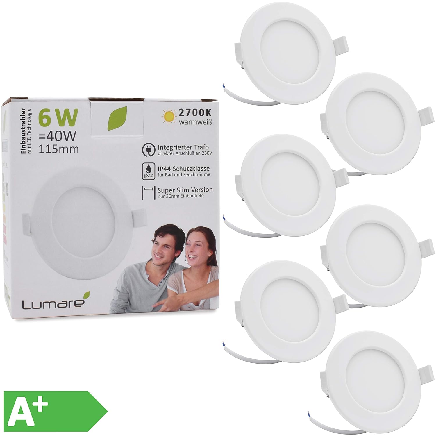 Wow, diese LED Einbaustrahler sind der Hammer! Im 12er-Set bekommst du superflache Spots mit nur 29 mm Einbautiefe. Perfekt für Decken und Wände. Dimmbar von 0-100% und mit 3 Farbtemperaturen wählbar: 3000K Warmweiß, 4000K Neutralweiß oder 6000K Kaltweiß. Einfach per Schalter auf der Rückseite umstellen! IP44 wasserdicht - ideal für Bad und Küche. 45° schwenkbar und mit 120° Abstrahlwinkel. Ø 85 mm, Ausschnitt Ø 67-75 mm nötig. Direkt an 230V anschließbar, kein Trafo nötig. Moderne Optik mit guter Wärmeableitung. Mach deine Räume richtig gemütlich! Einfache Installation - probier's aus!