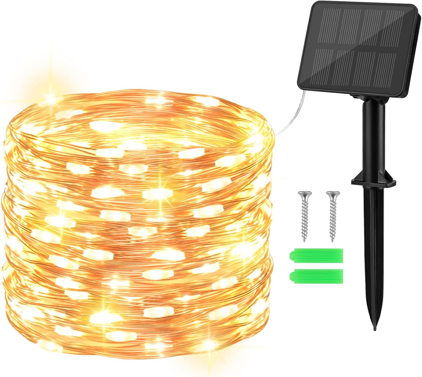 Mach deinen Garten oder Balkon mit dieser Solar-Lichterkette von KOBOKO gemütlich! 12 Meter Länge, 100 warmweiße LEDs und 8 verschiedene Beleuchtungsmodi – da ist für jede Stimmung was dabei. Ob Welle, Flackern oder Dauerlicht – du hast die Wahl. Der Kupferdraht ist super flexibel und bricht nicht so schnell, auch wenn du ihn oft um Äste oder Geländer wickelst. Das Solarpanel lädt bei Sonne 4–5 Stunden und leuchtet dann 8–10 Stunden. IP65 wasserdicht heißt: Regen, Schnee & Co. machen nichts aus. Einfach in die Erde stecken oder aufhängen, und abends automatisch einschalten lassen. Perfekt für Garten, Terrasse, Hochzeit oder Weihnachten!